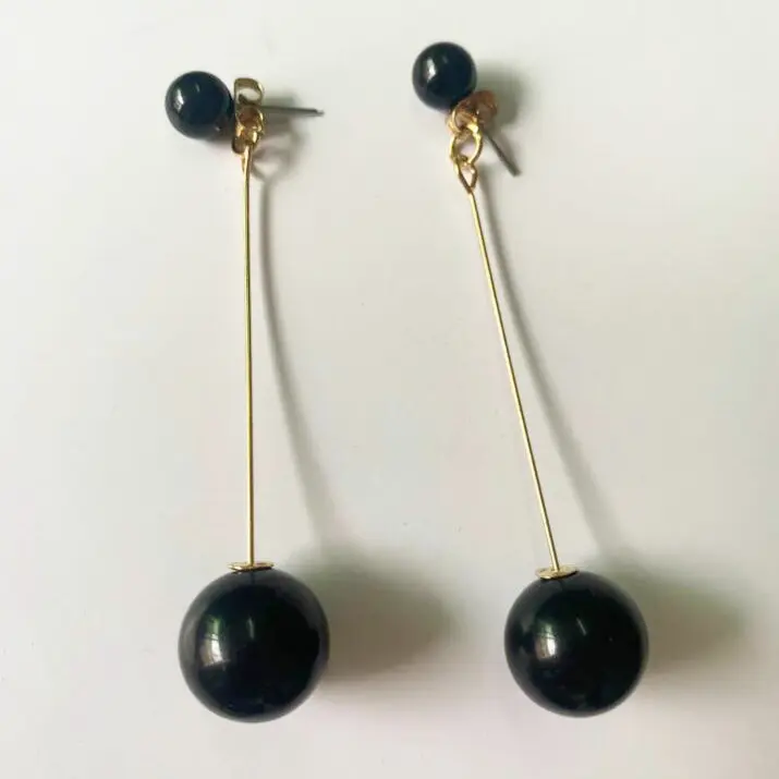 These elegant black velvet ball drop earrings blend timeless sophistication with modern minimalism, making them a versatile addition to any jewelry collection. Crafted with a delicate gold-toned metal post and slender bar, they feature two plush black velvet spheres—one small at the earlobe, one larger dangling below—creating a graceful, elongated silhouette. The soft, matte texture of the velvet contrasts beautifully with the warm metallic sheen, adding subtle luxury to both casual and formal outfits. Lightweight and comfortable for all-day wear, they effortlessly elevate your look, whether paired with a sleek blouse for the office or a little black dress for evening events. Perfect for gifting or treating yourself, these earrings offer understated glamour that complements any style.