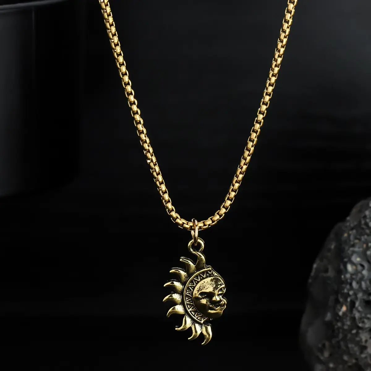 This striking sun and moon couple necklace set embodies the timeless bond between celestial opposites. Crafted with a vintage-inspired finish, one pendant features a warm golden sun with a whimsical face, while the other showcases a cool silver crescent moon, both designed to interlock perfectly. The set includes two distinct box chains—one antique brass, one silver—allowing each wearer to carry a piece of the other. Ideal for couples, best friends, or anyone drawn to celestial symbolism, this necklace pair blends bohemian charm with durable metal construction. It’s a meaningful accessory that tells a story of unity, balance, and eternal connection, perfect for everyday wear or special occasions.