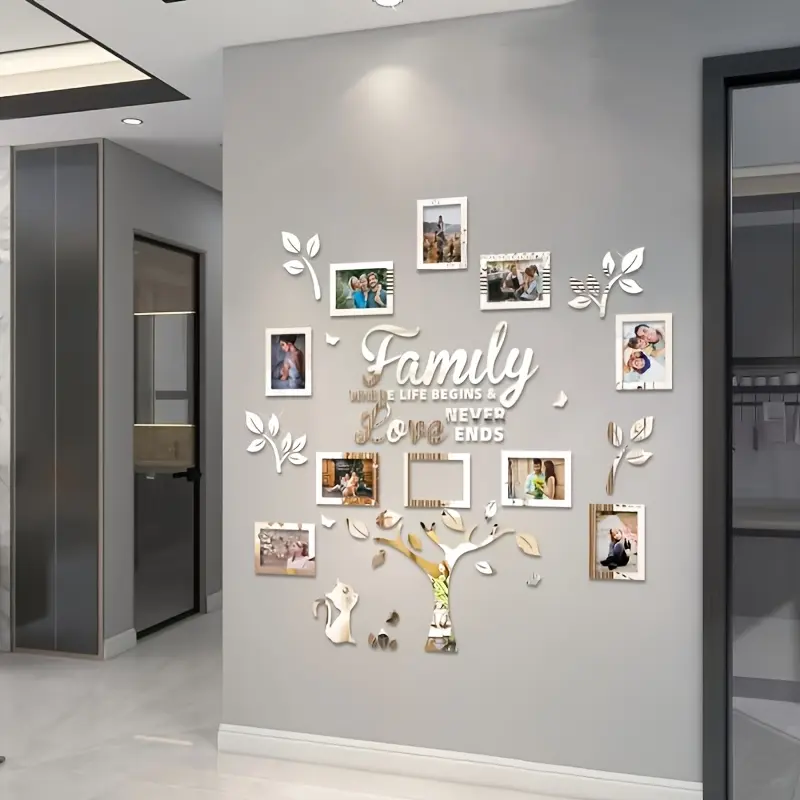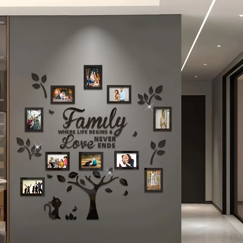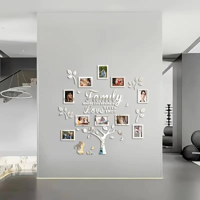 Transform your space with this elegant acrylic family tree sticker set. Perfect for showcasing cherished photos, it adds a warm, decorative touch to any room. Ideal for weddings, Mother's Day, Valentine's Day, Thanksgiving, Christmas, birthdays, and other special occasions. Enhance your living room, bedroom, hallway, or any room with a personal touch. A great gift for families, parents, grandparents, couples, and loved ones.