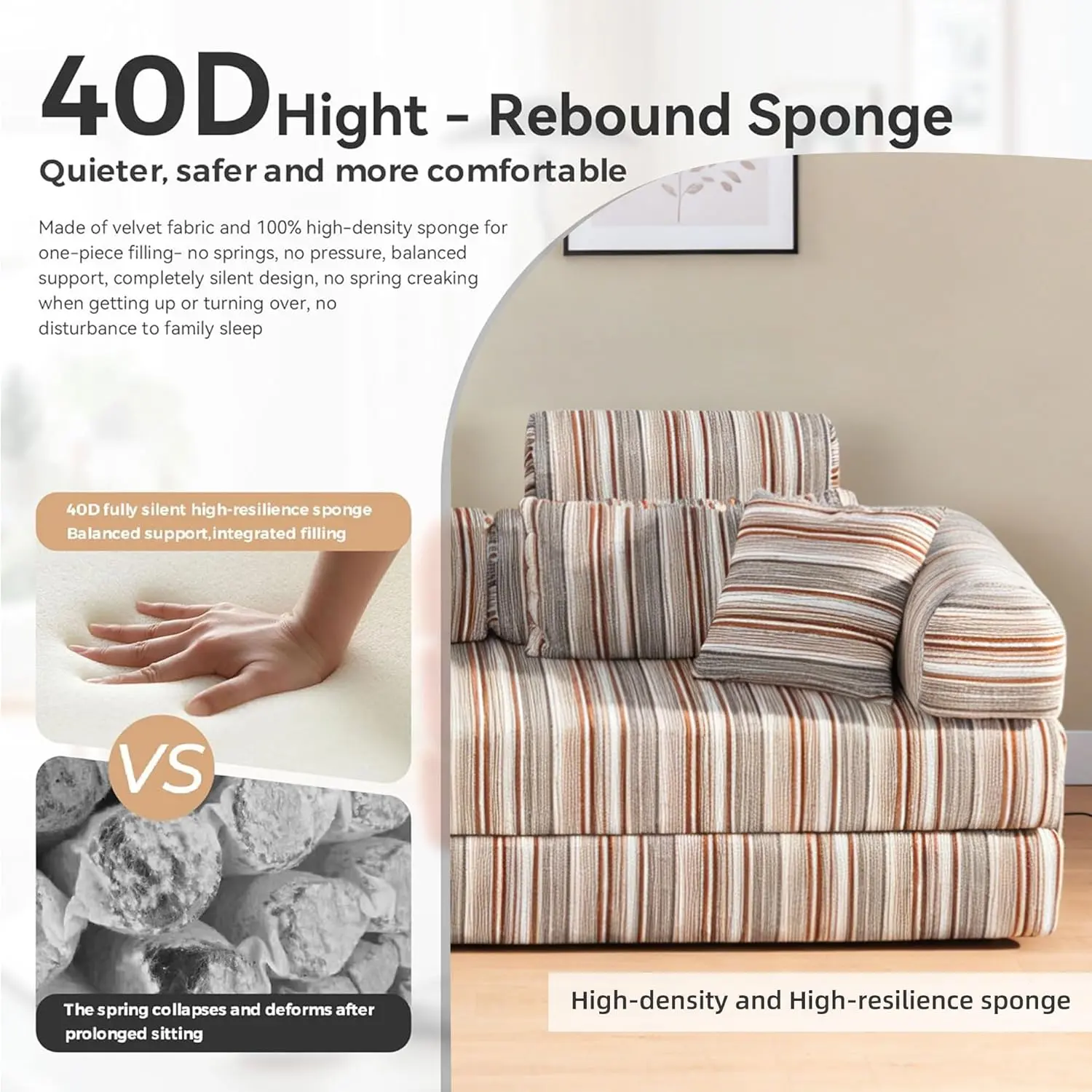 ·[5-in-1 Versatile Sofa: Upgraded Design] This premium sofa combines 5 functions in 1 sleek unit: a comfortable couch, a guest bed, a floor sofa, a gaming seat, and a space-saving modular piece. The upgraded high backrest allow you to customize support and layout for any activity.