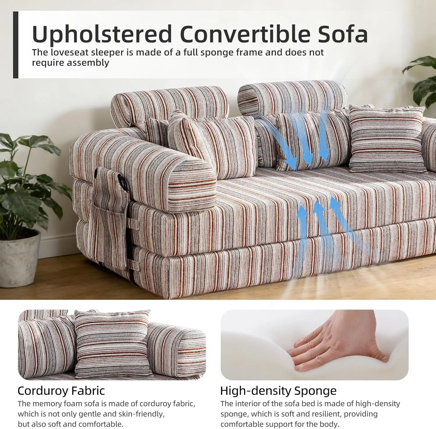 ·[Modern Style Meets Practical Function] Features a rich corduroy texture in modern, blending seamlessly with your decor. Ideal as a floor sofa, gaming couch, or guest bed, it adds both aesthetic appeal and practical sleeping space to any room.