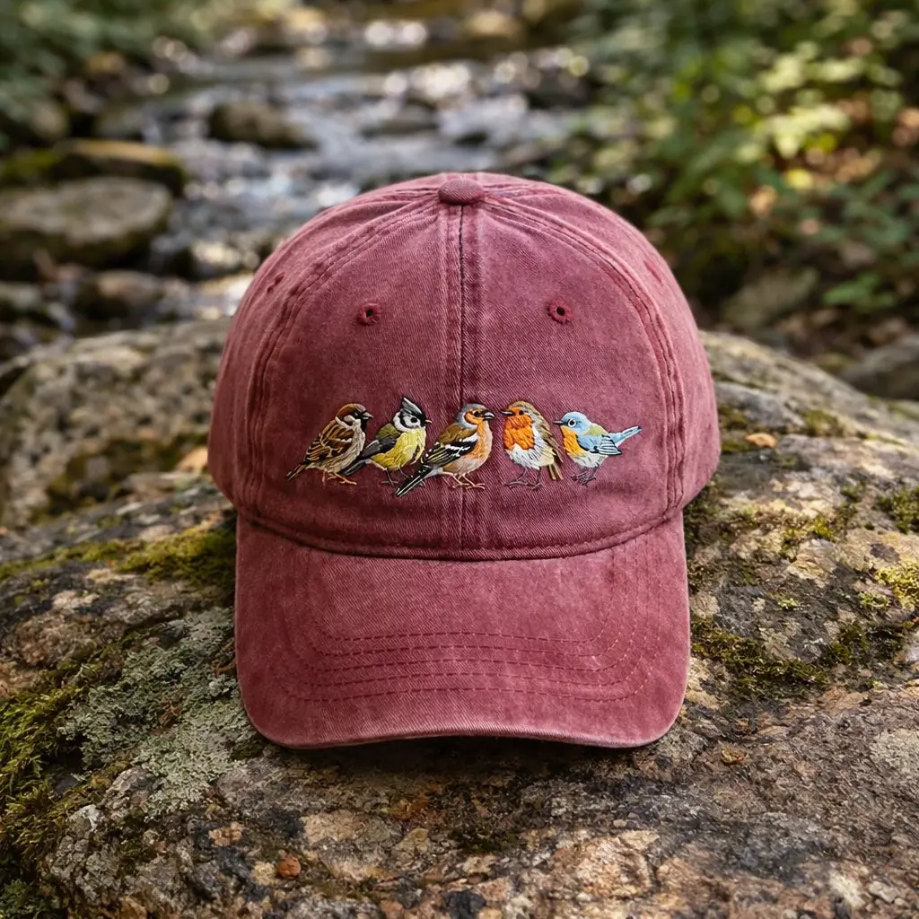 Bird Lover Hat – Embroidered Row of Birds Dad Cap, Nature Baseball Hat, Ornithology Gift for Bird Watchers