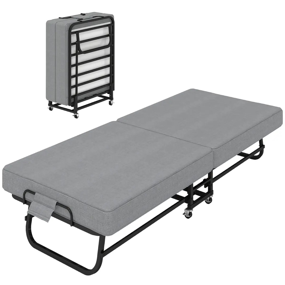 Designed for convenience and comfort, this adult portable folding bed is your ideal choice for temporary sleep. Matching your product images, it showcases a sleek, space-saving design that folds easily for compact storage, while the smooth lockable wheels let you move it effortlessly between rooms. Crafted with soft, breathable fabric and a supportive memory foam mattress, it delivers cozy sleep wherever you need it-from guest rooms to camping trips-with a sturdy steel frame ensuring long-lasting use.