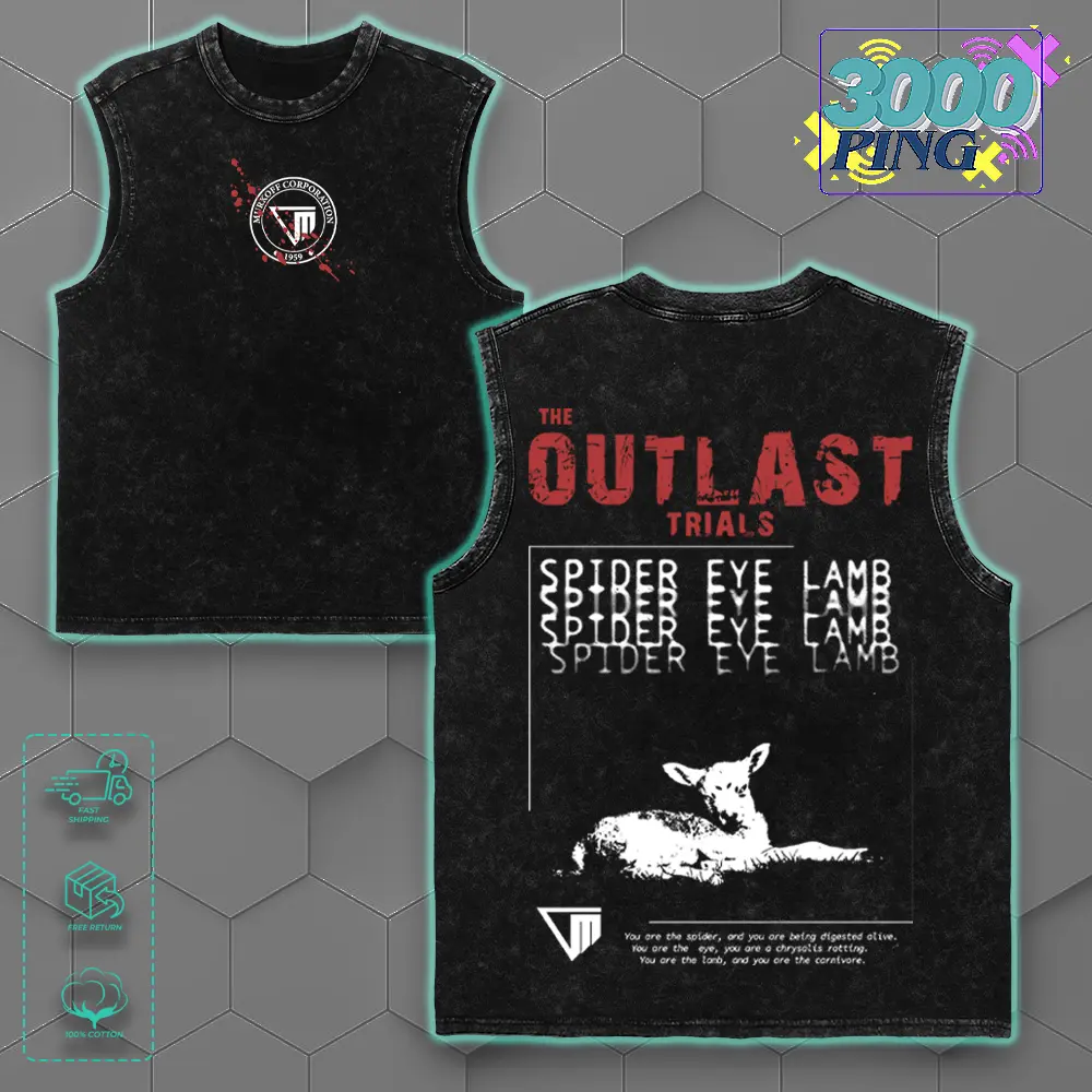 The Outlast Trials Horror Game Graphic Tee, Vintage T-shirt Hoodie Sweatshirt Tank Top, Spider Eye Lamb Game Merch, Unisex Cotton Top Streetwear Menswear Heavyweight