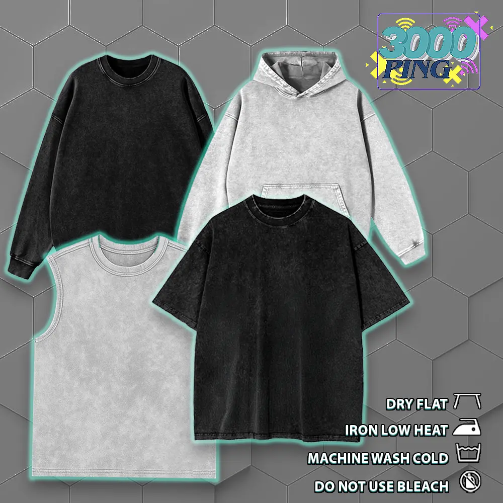 Upgrade your wardrobe with our premium American-made Oversized Washed T-Shirt. Crafted from 100% premium cotton (230gsm), it offers exceptional softness, durability, and a relaxed fit. The Washed Hoodie crafted from 350gsm premium cotton for ultimate comfort and durability. Features include pre-washed fabric to minimize shrinkage, shoulder-to-shoulder taping, and a seamless rib collar for lasting quality. Sizes S–5XL ensure a perfect fit for everyone.