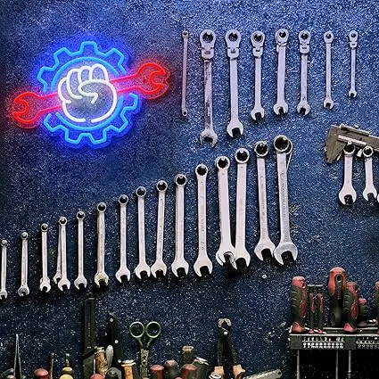 Garage Neon Sign Dimmable Wrench Neon Sign for Wall Decor Wrench Shaped LED Neon Light Up Signs Suitable for Garage Christmas Birthday Party Bedroom Man Cave Decor Garage Auto Repair Shop