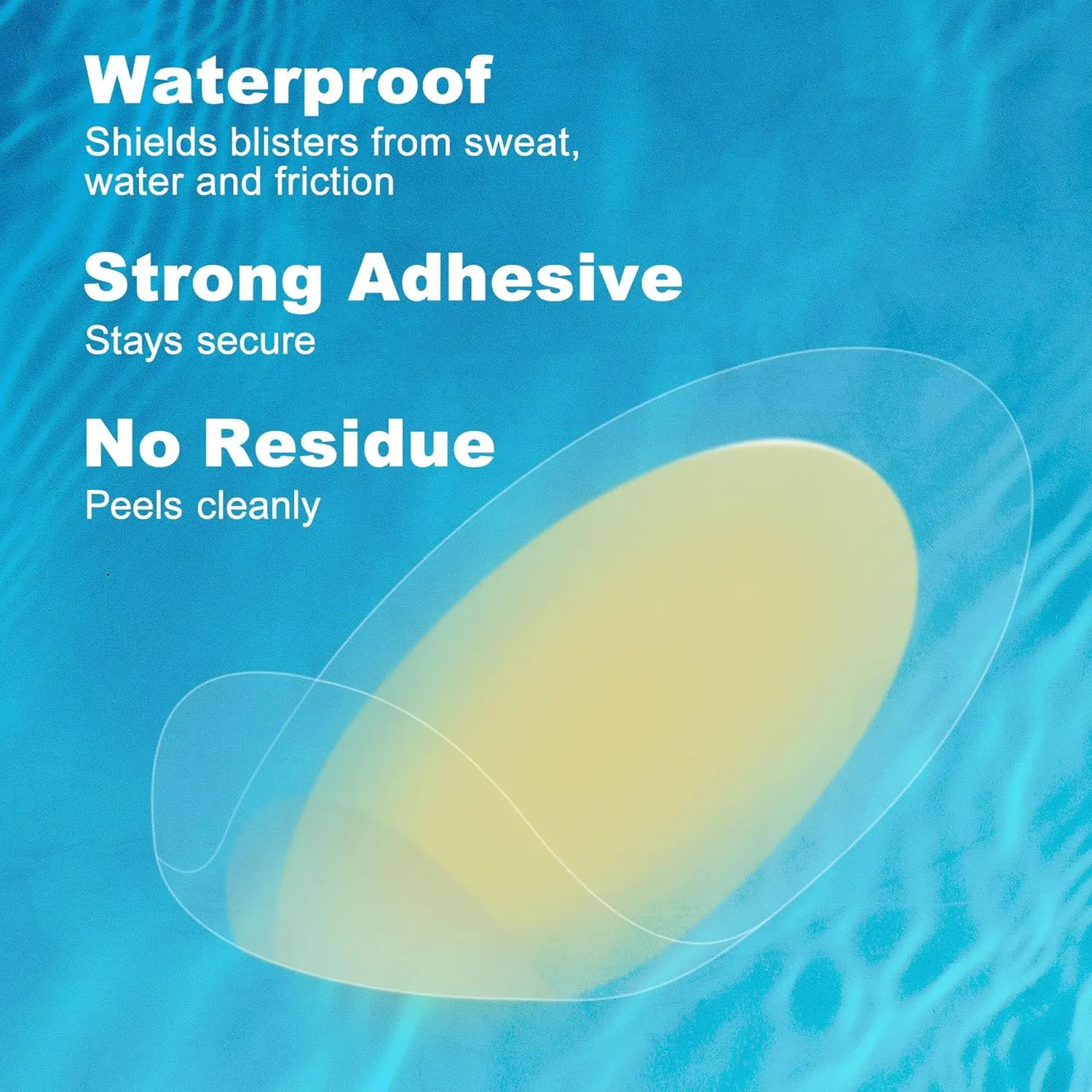 ·Faster Recovery with Water Resistant - These waterproof blister bandages work like a second skin, sealing out dirt and water while absorbing blister fluid. The moist healing environment speeds recovery, getting you back on your feet twice as fast. These hydrocolloid blister pads prevent your skin from water effectively to stop deterioration of blisters. You can use them even in shower or swimming