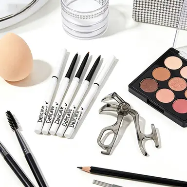 ·Eyelash curler and eyeliner pencil for dramatic eyes.