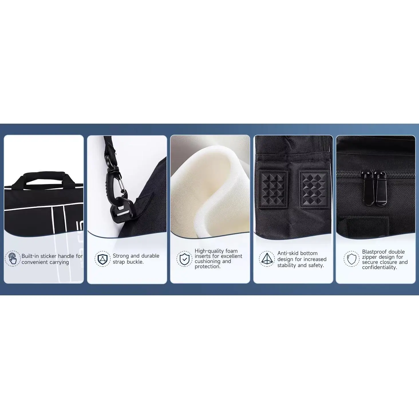This travel bag is equipped with a fill handle and a convenient magic sticker that allows you to easily carry and take out accessories in your bag. The case also comes with an adjustable shoulder strap that allows you to adjust the length. The ample filler can relieve shoulder and hand pressure, making it more comfortable to use.