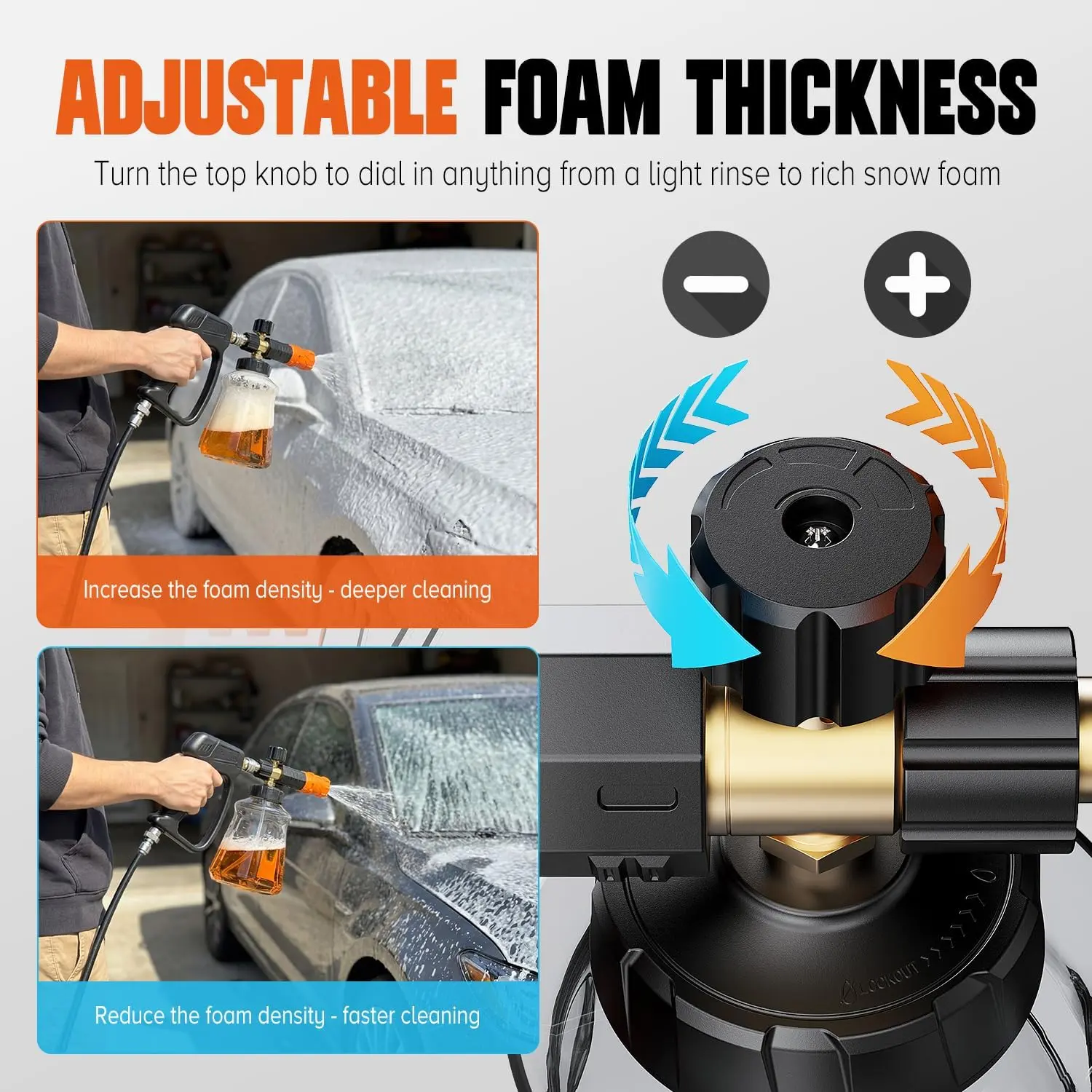Foam Cannon for Pressure Washer, Foam Blaster with 1/4 Inch Quick Connector 1L Bottle Adjustable Snow Foam Lance and Thick Foam for Safe Washing Car/Motorcycles