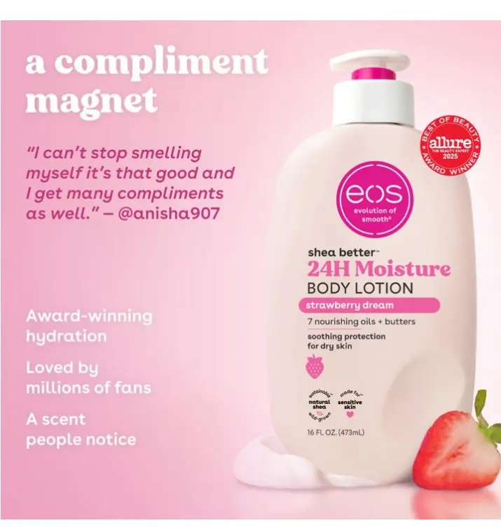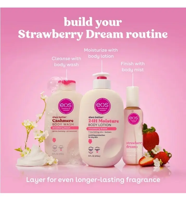 eos Shea Better Body Lotion for Dry Skin, Strawberry Dream, 16 fl oz