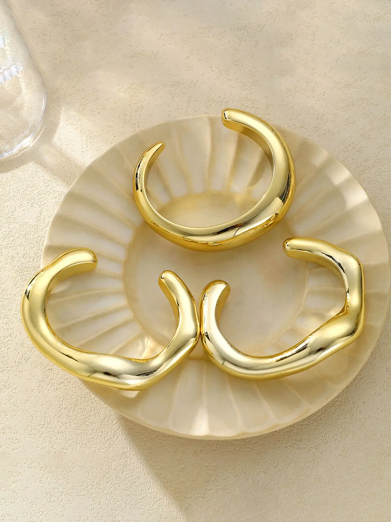 3-Piece Vintage Elegant Fashion Casual Minimalist Wide Wave Arc Ccb Resin Lightweight Open Bangle Set for Women, Perfect for Daily Wear, Parties, Weddings