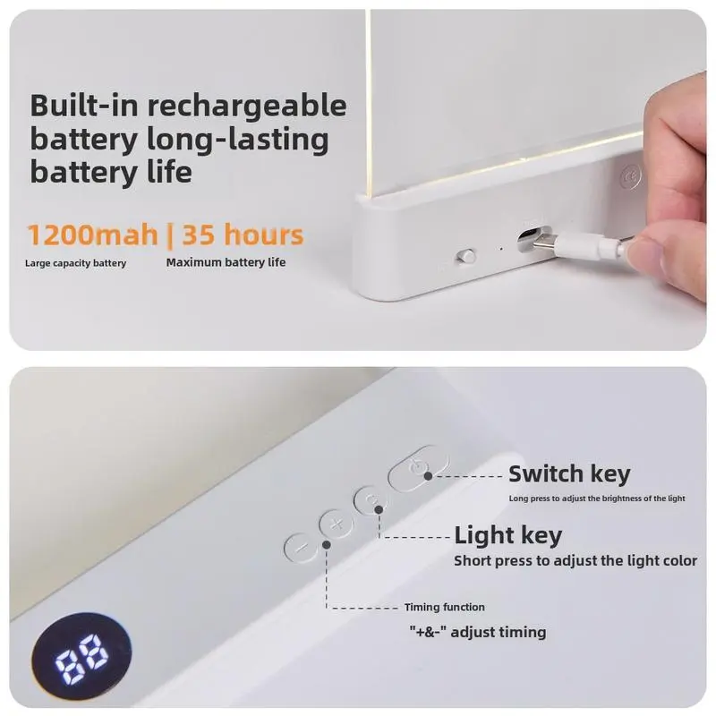 💡 Dimmable LED Light: Equipped with a dimmable full-page panel, this light adjusts to your reading needs. The clear LED ensures bright, eye-friendly illumination. The timer feature adds convenience, automatically turning off after a set period.