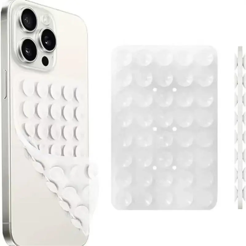 ·The image shows the silicone suction cup phone case mount in use, demonstrating its strong grip and dual-sided functionality.