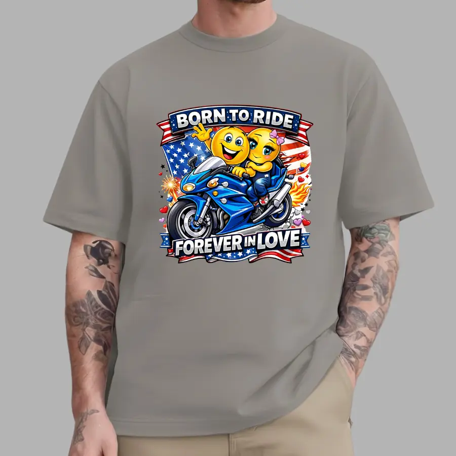 Born To Ride T-Shirt Forever In Love Couple Biker Tee - USA Patriotic Streetwear