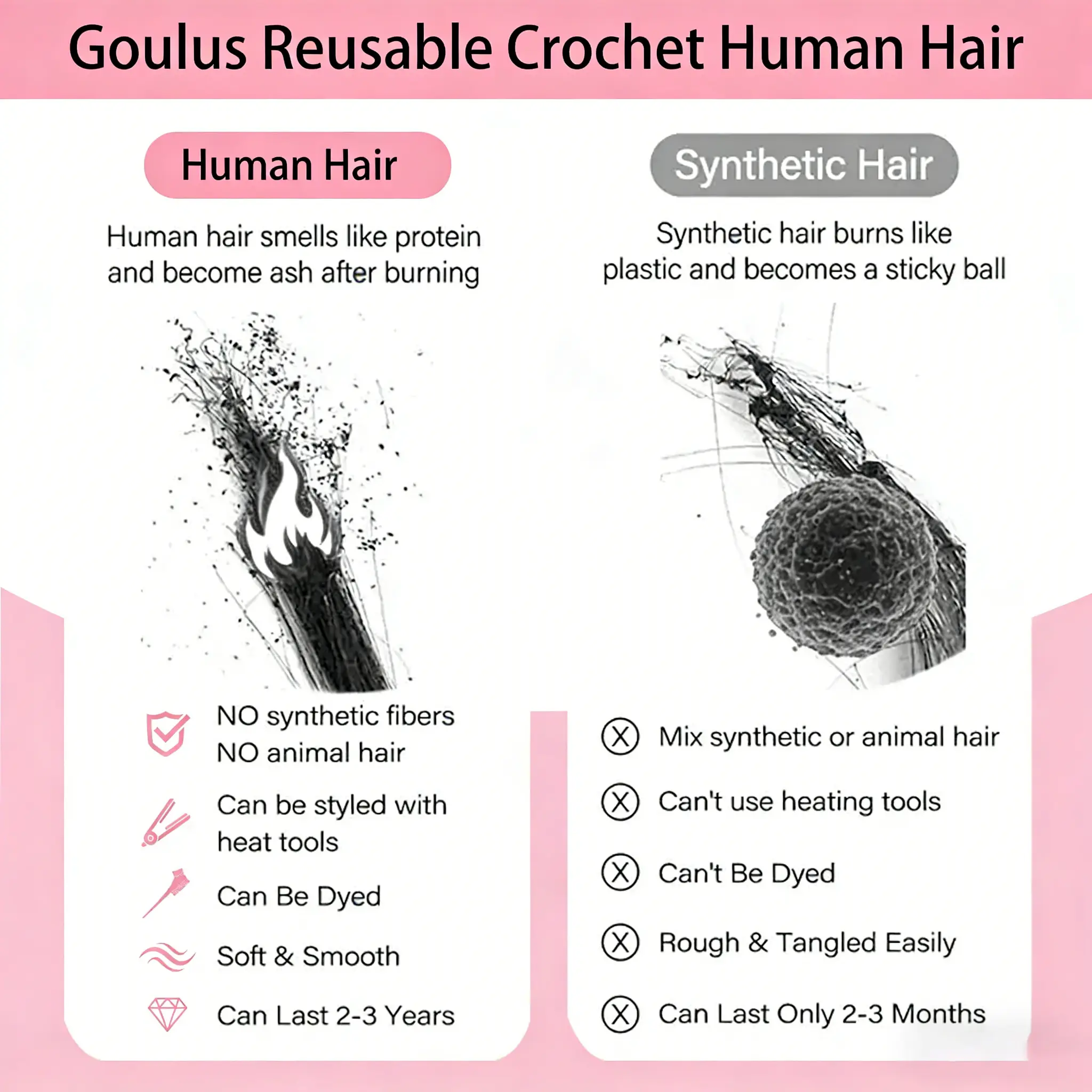 [NEW IN] GOULUS Burmese Curly Crochet Hair Pre-Separated Feather Human Hair Bundles with Invisible Miracle Knots Natural Black Color 4–5 Packs for Full Head Multiple Curly & Wavy Textures Soft Lightweight No Tangle No Shedding Hair Extensions