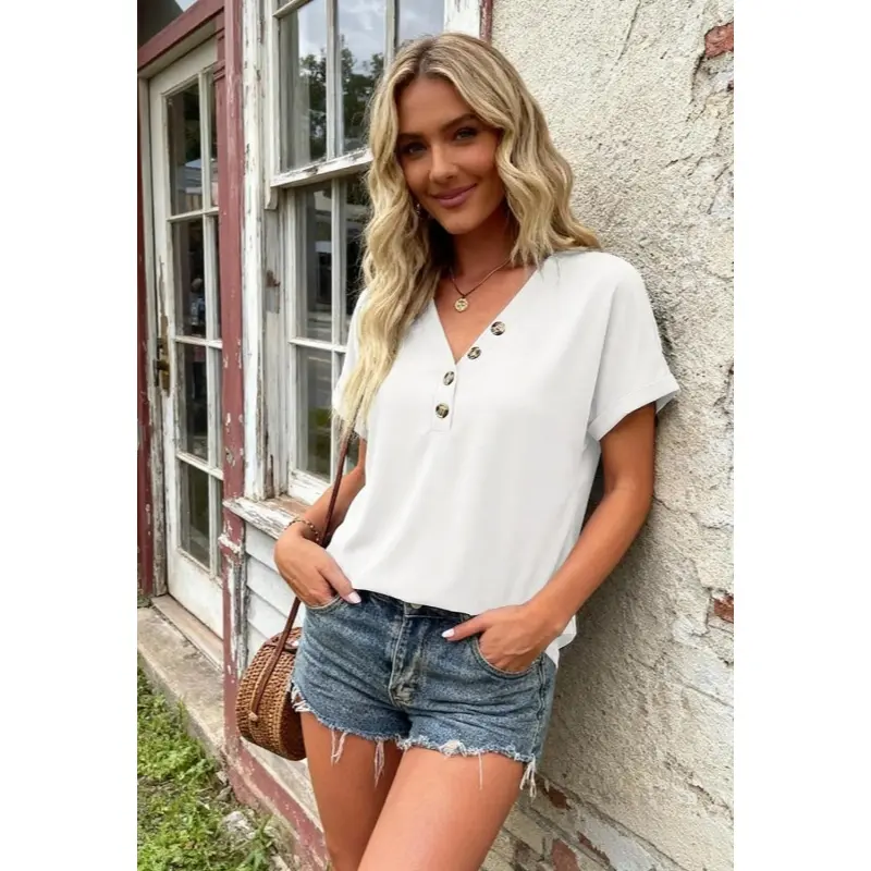 ·Cute Button V Neck Style -- Womens V Neck T Shirts Summer Beach Outfits fashion design for short sleeve,loose Fit,button v neck for a stylish,which can be casual and everyday, as well as comfortable and cute.