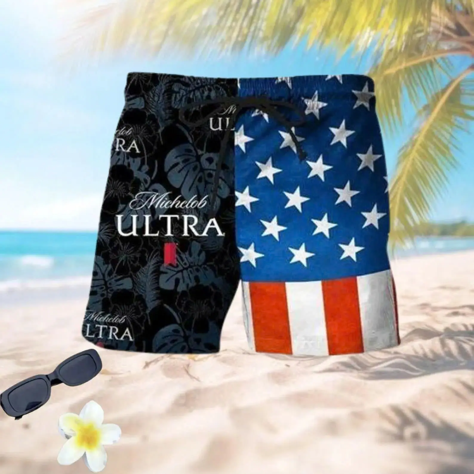 Matching Michelob ULTRA Couple Swimsuits Set, Bikini & Mens Beach Shorts, Summer Vacation Hawaiian Outfit, His and Hers Swimwear Gift