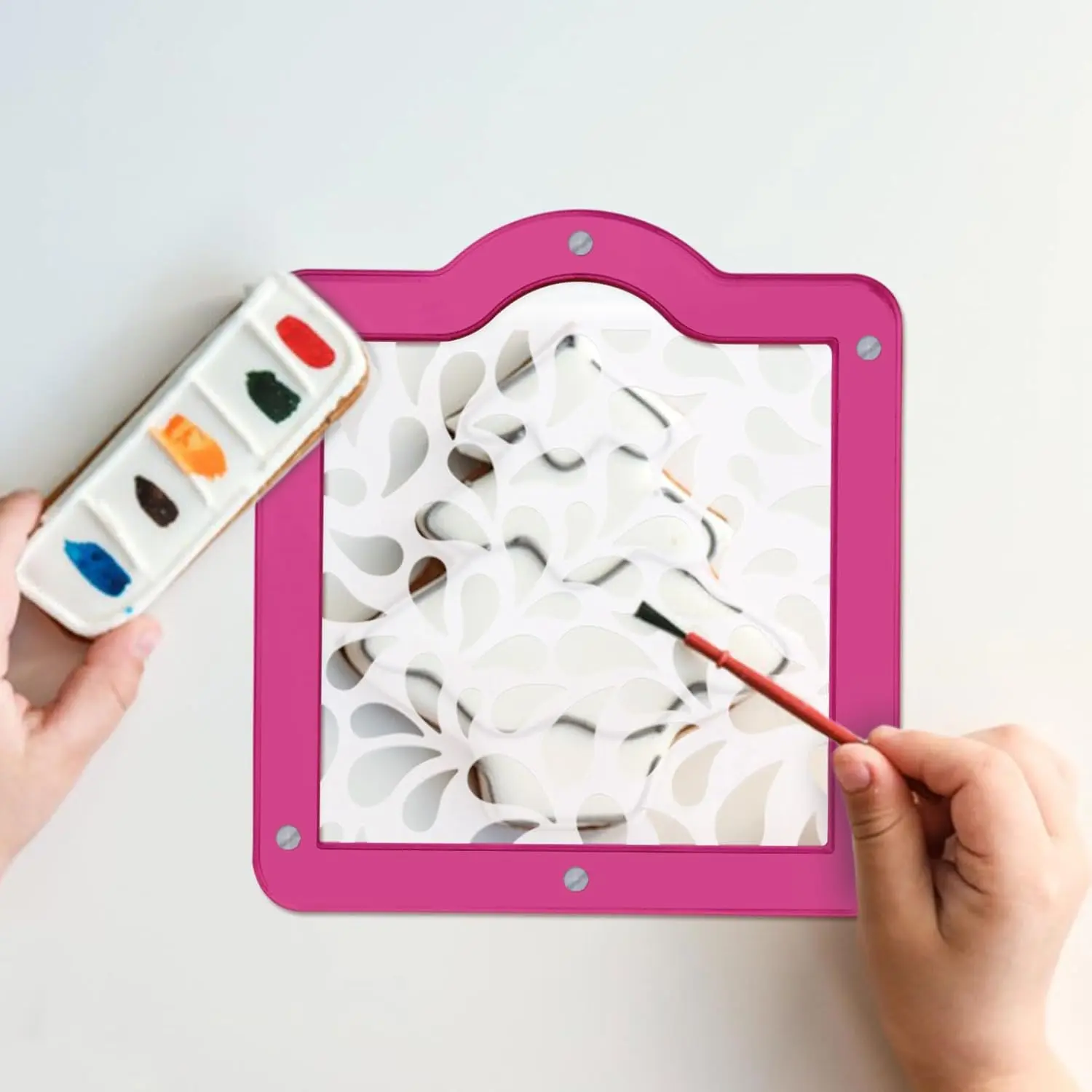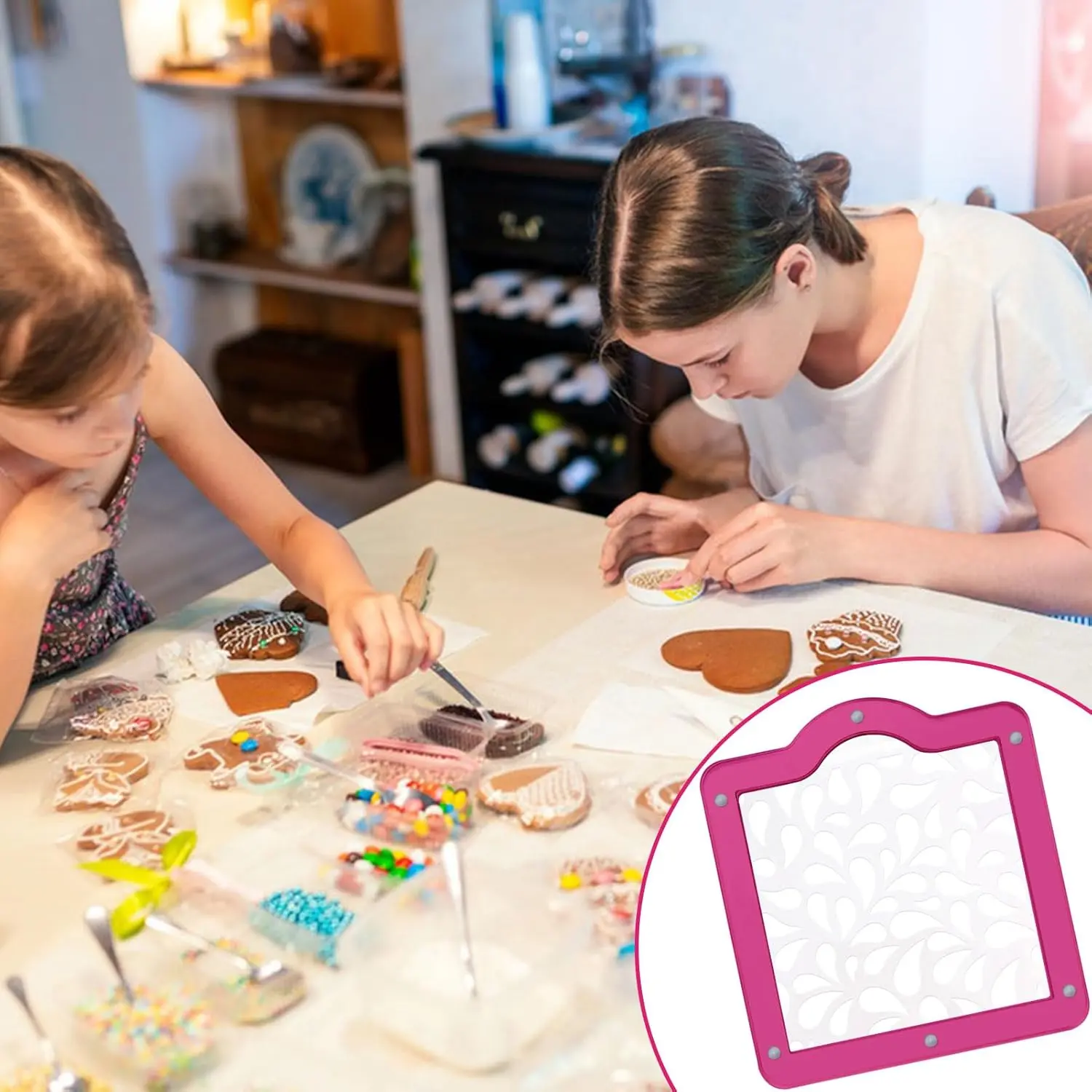 Magnetic Acrylic Cookie Stencil Holder,Cookie Stencil Frame Stencils for Royal Icing,Magnetic Template Frame for Cooking Cake Coffee Dessert Decoration Supplies (Pink Square-6.7 * 6.1 in)