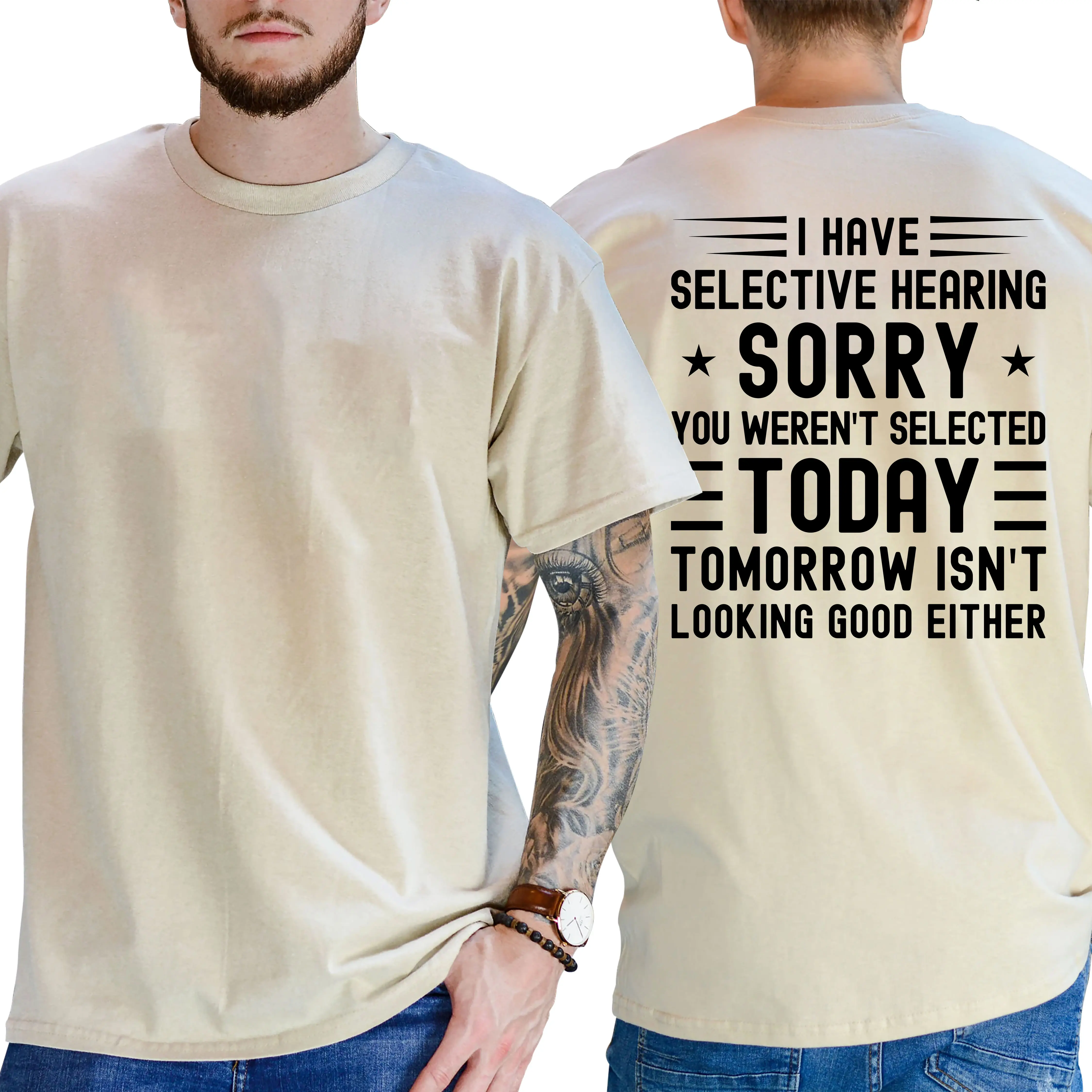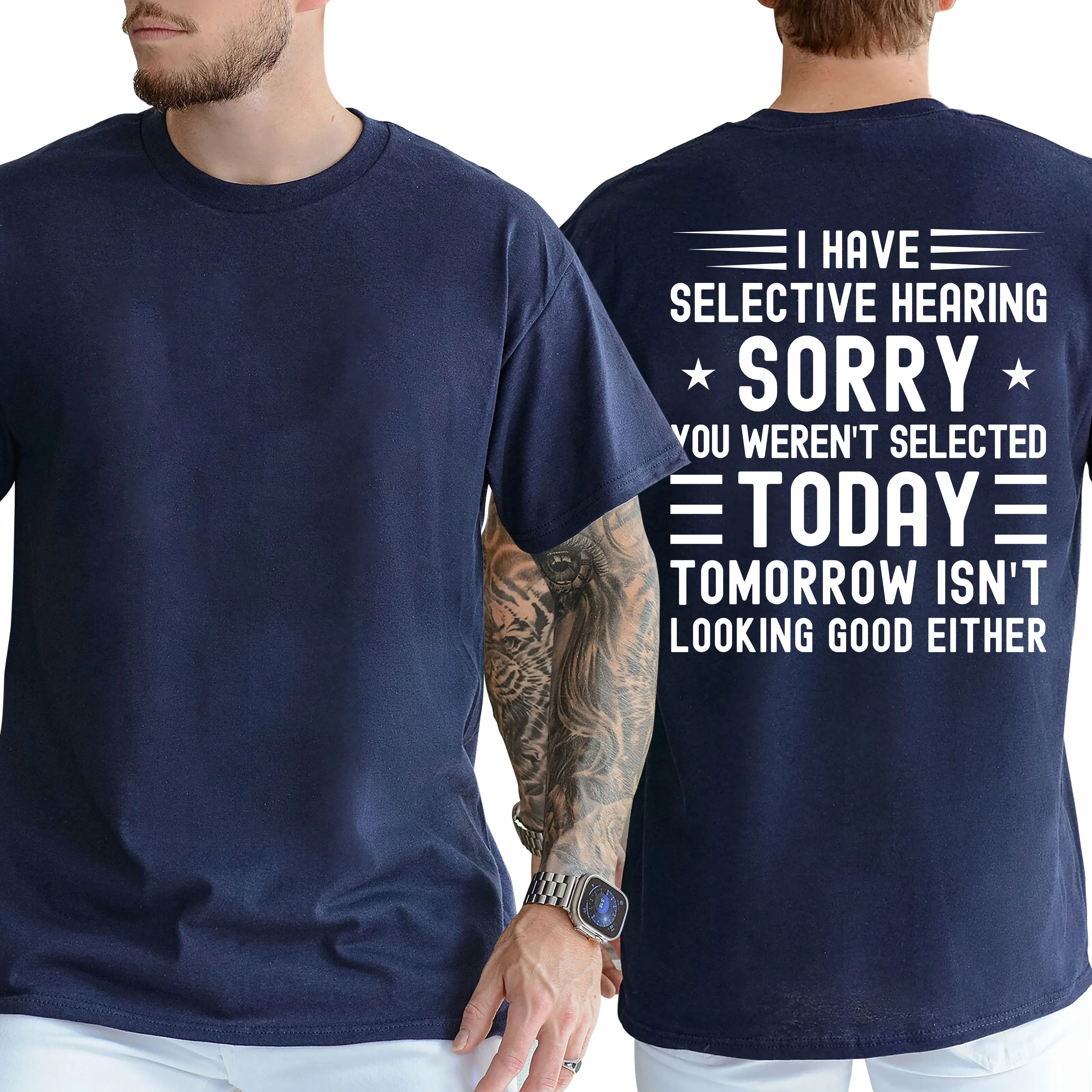 I Have Selective Hearing You Weren't Selected Today Funny Shirt, Short Sleeve Printed Graphic Shirt, Daily Casual Cotton Menswear
