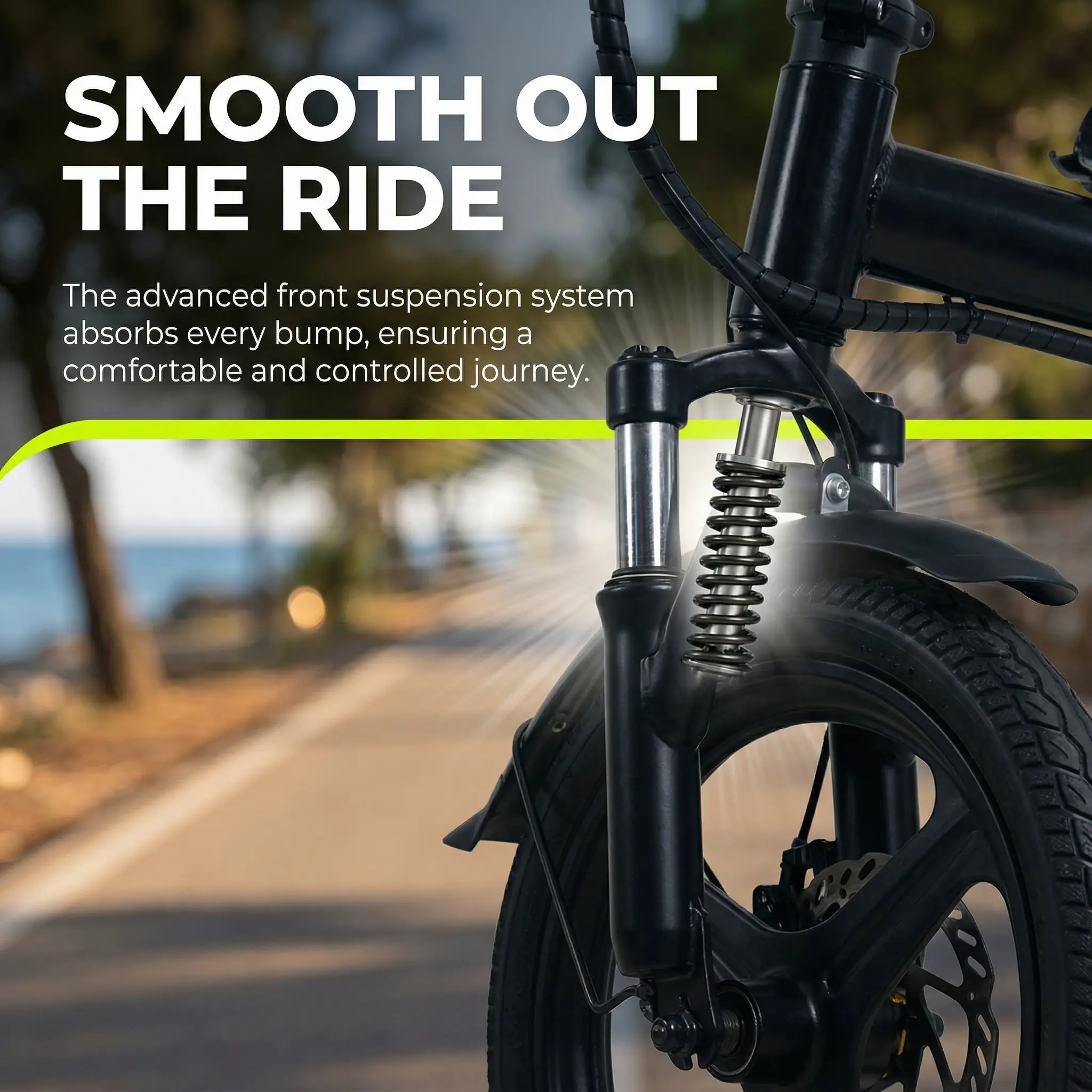 Folding Electric Bike | Speed up to 22 MPH | Front Suspension | 48V 15Ah Battery | Ideal for Urban Commuting disc brake