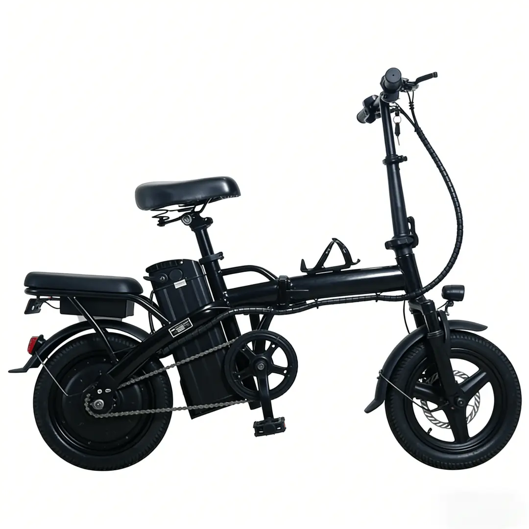 Adult Electric Folding Bicycle 450W Motor 48V 15Ah Battery 22 mph Speed 8-Level Shock Absorption 25 km Range Includes Wheels Pedals Charger