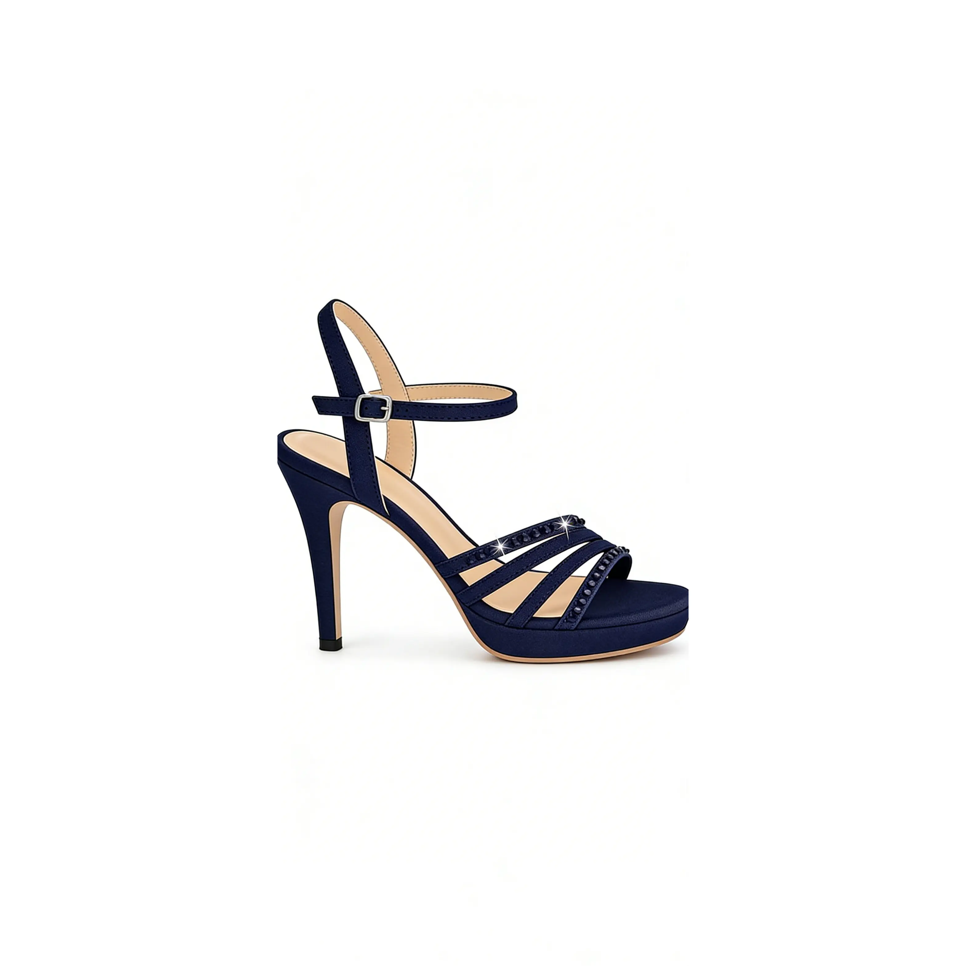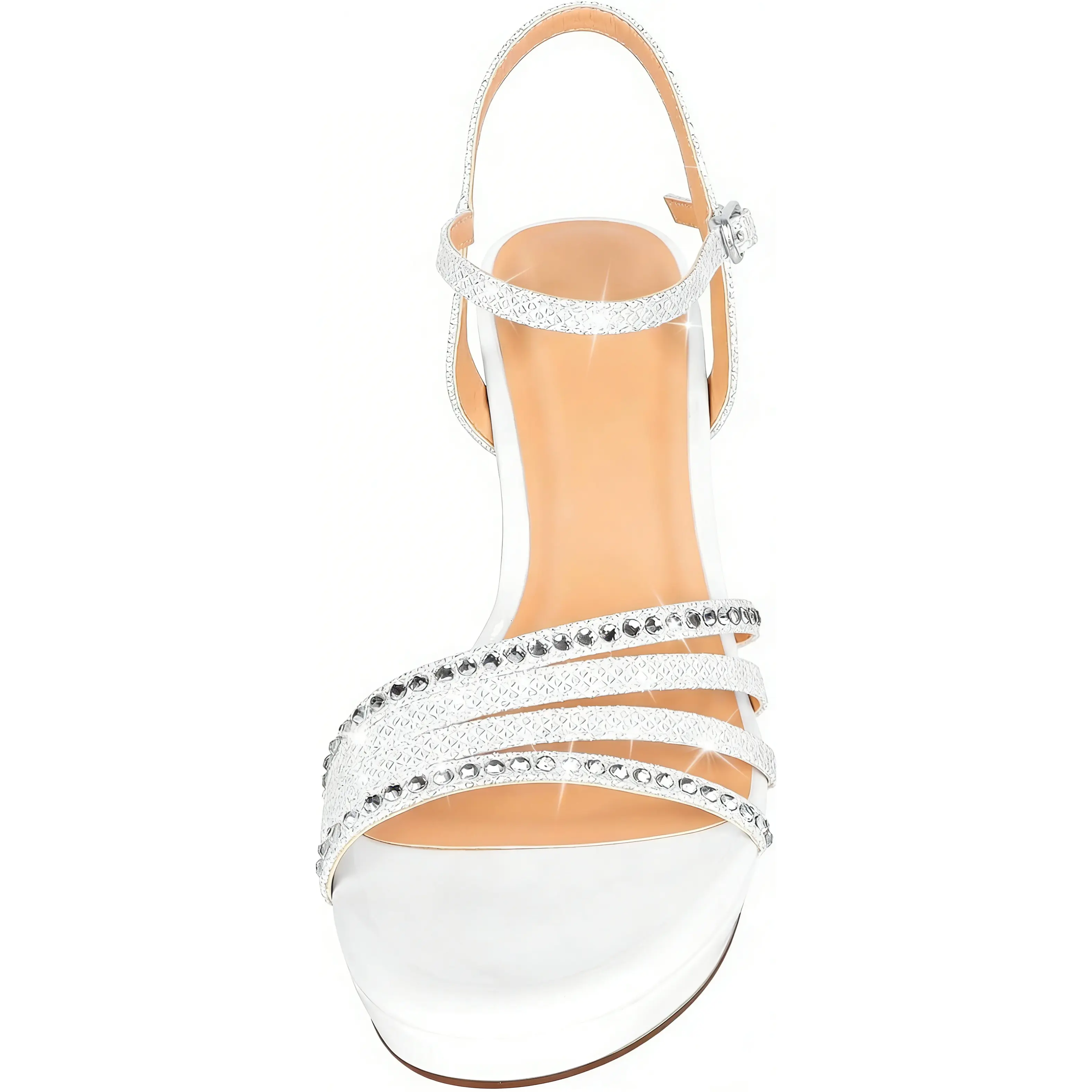 Skyline - Embellished Block Heel Ankle Strap Sandals, Platform Design, Glamorous Summer Footwear, Perfect for Parties or Special Occasions, Chunky Heel, Adjustable Buckle Closure, Rhinestone Decor