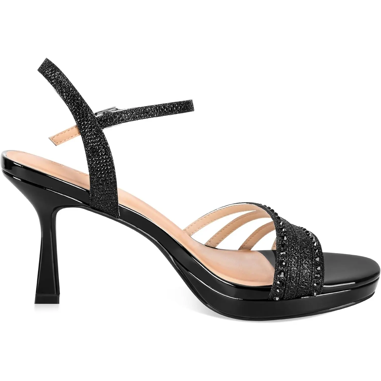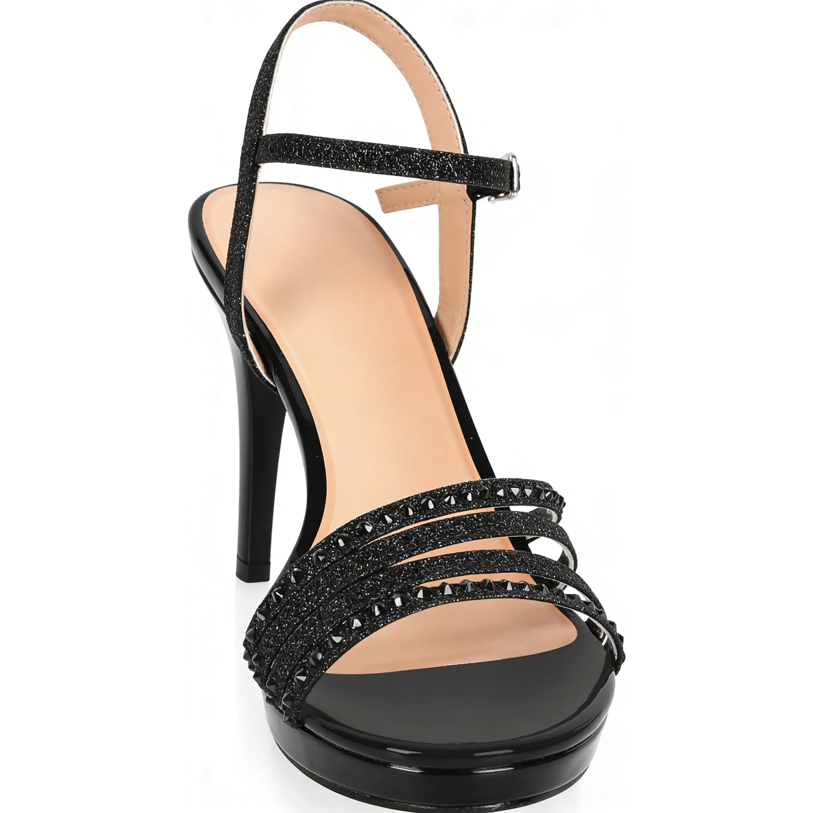 Karla - Embellished Platform Ankle Strap Sandals, Rhinestone Details on Platform & Strap, Glamorous Summer Footwear, Stylish & Eye-Catching Design Buckle