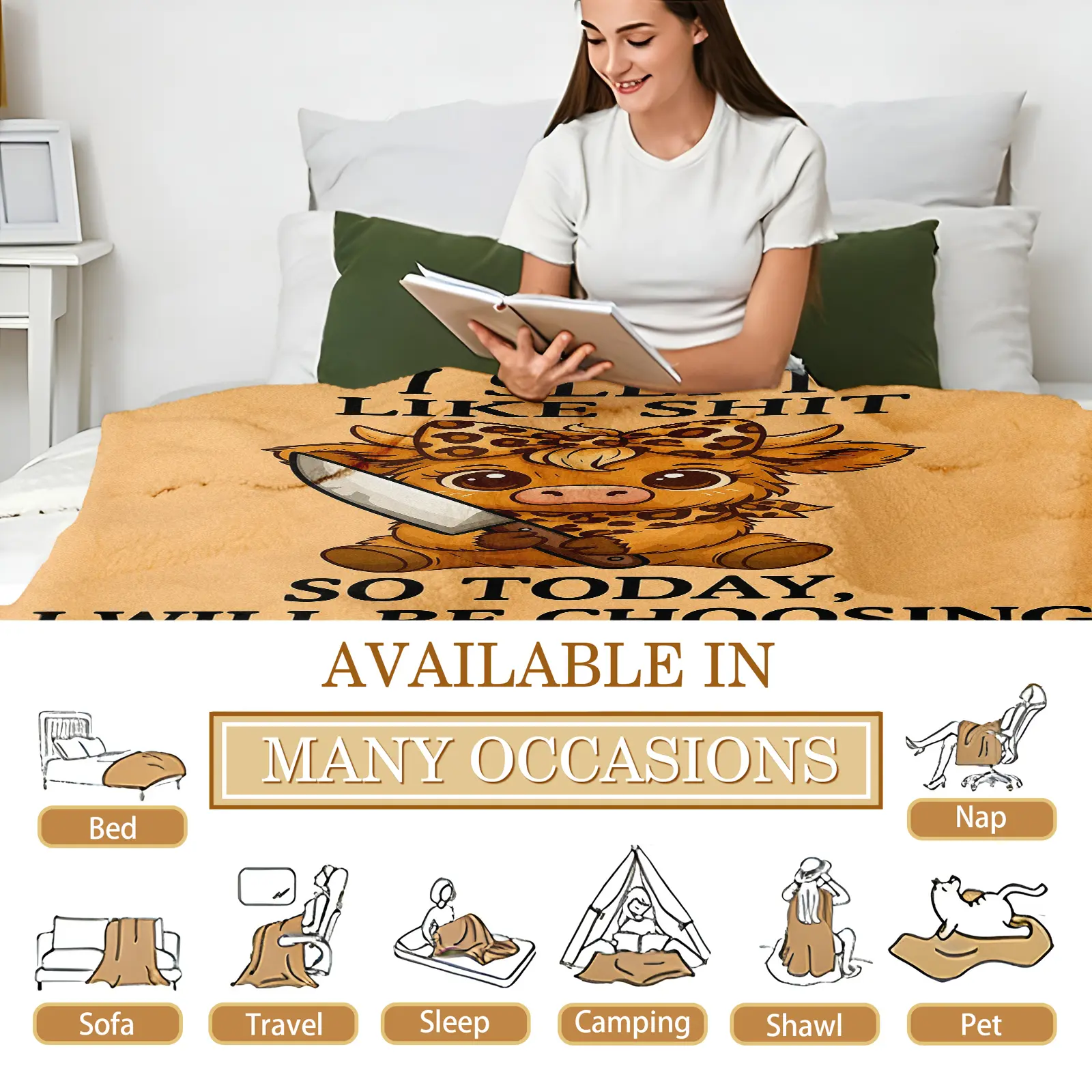 Cute Highland Cow Blanket-"I Slept Like Shit So Today I Choose Violence",Adorable Leopard Print Bow Cow with Knife Funny Quote Design,Perfect for Friends