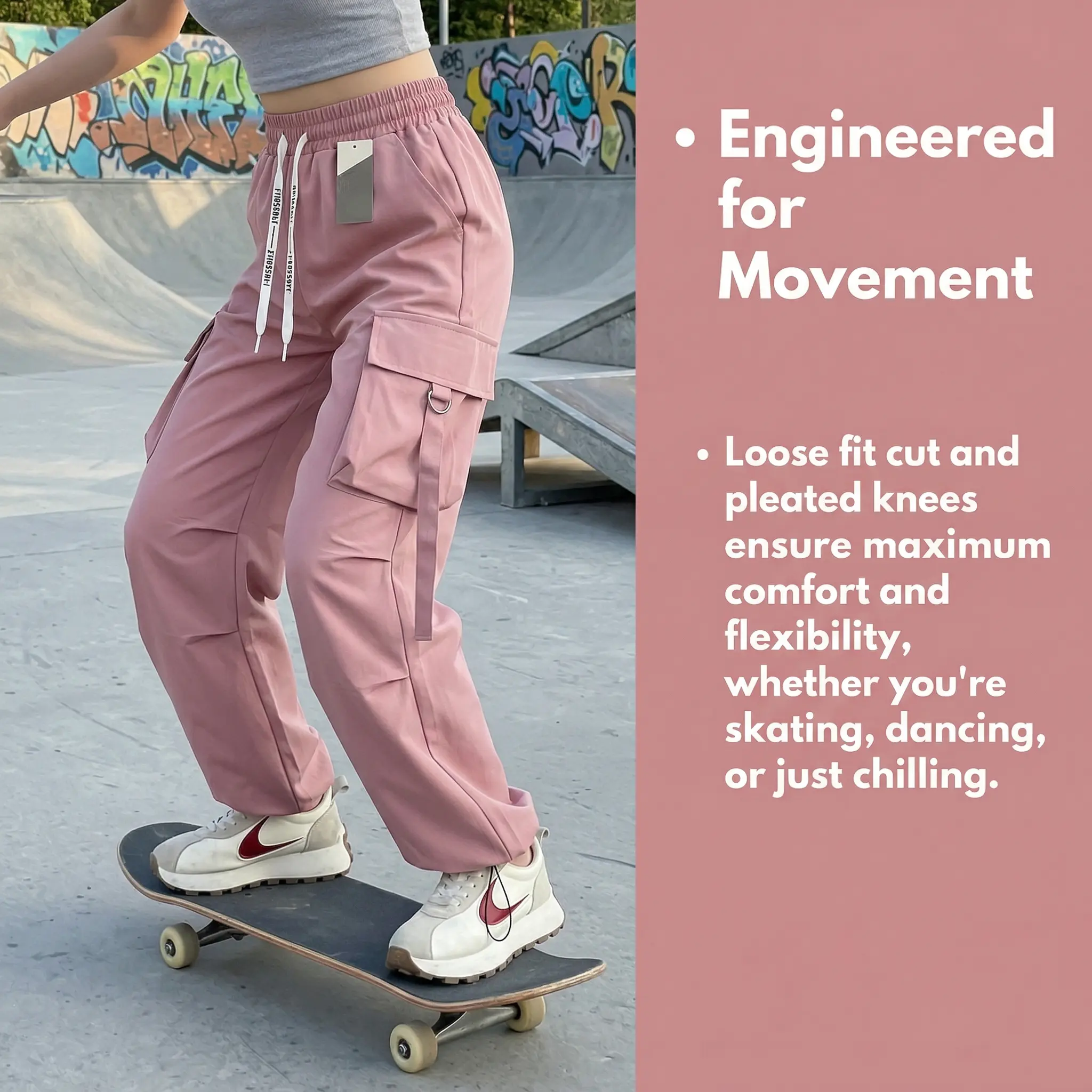 cargo pants women,baggy pants,Women's Loose Work Pants Wide Leg High Waist Sports Leisure Pants with Pockets - Comfortable for Daily Wear, Multifunctional, Diverse Colors, Breathable Sports Underwear, All Seasons, Plain Pattern, Womenswear Bottom