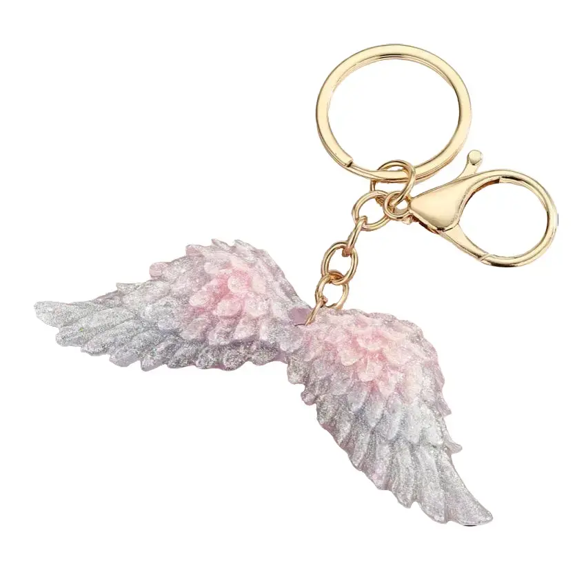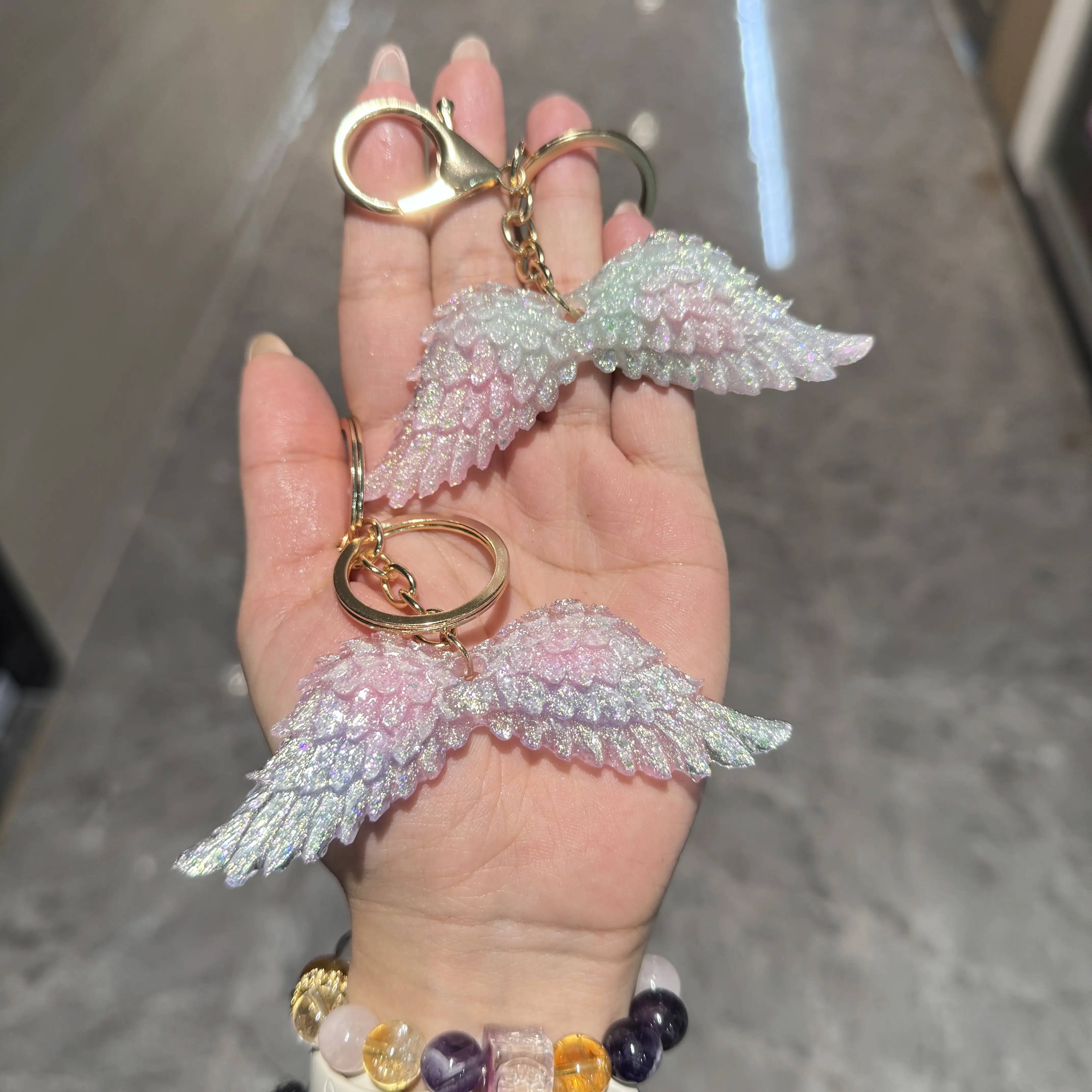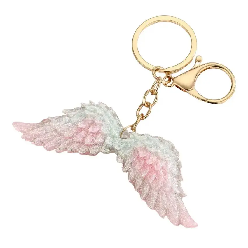 The keychain features glowing angel wings, adding a unique touch.🌟