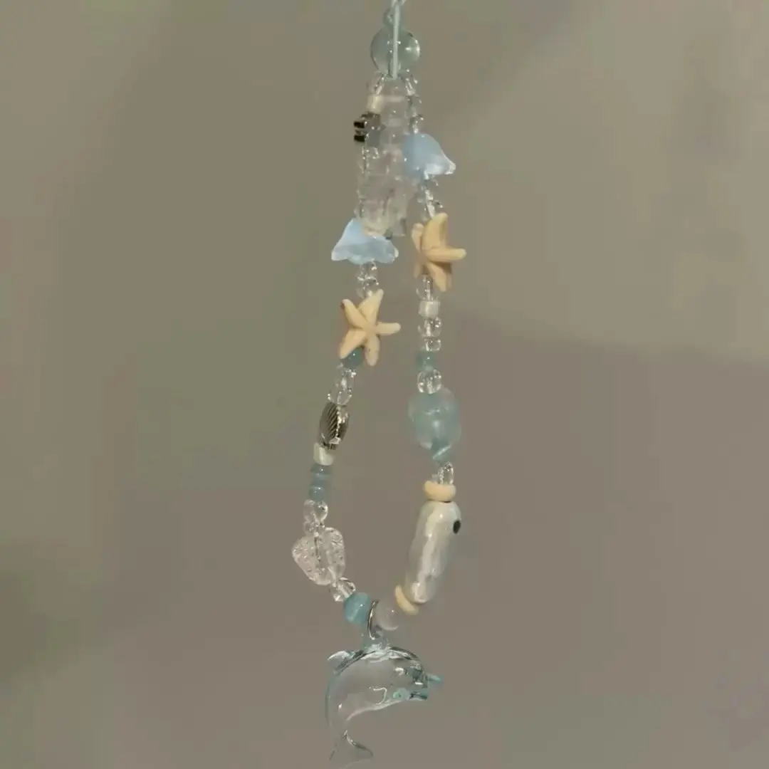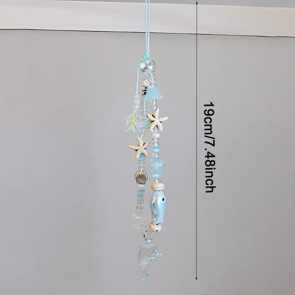 5. Handmade Acrylic Starfish & Dolphin Beaded Chain Bracelet Keychain Bag Decoration Coastal Design Durable Lightweight Material Decorative Accessories Keychain Bag Pendant