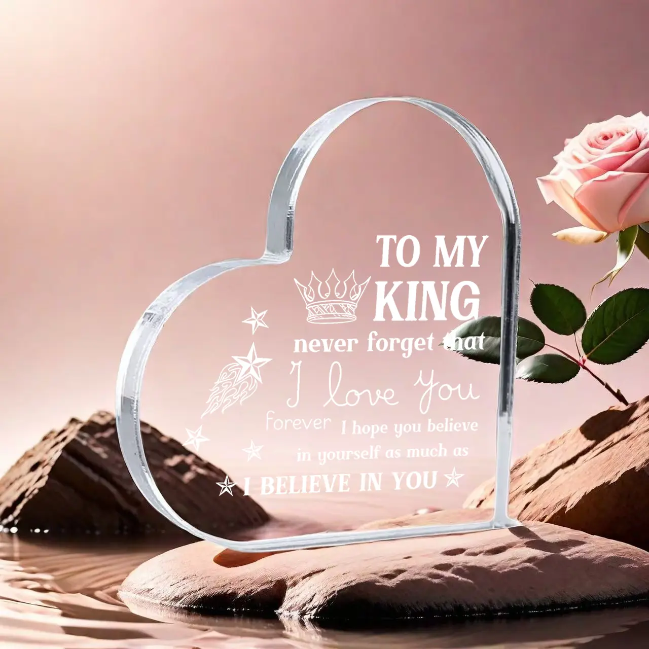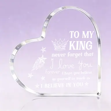 ✨ Heart Shaped Acrylic Plaque is a thoughtful gift for your loved one. Engraved with "To My King I Love You," it's ideal for anniversaries, Valentine's Day, or birthdays. This plaque adds a romantic touch to any home or office desk. Perfect for boyfriends or husbands, it's a heartfelt gesture.
