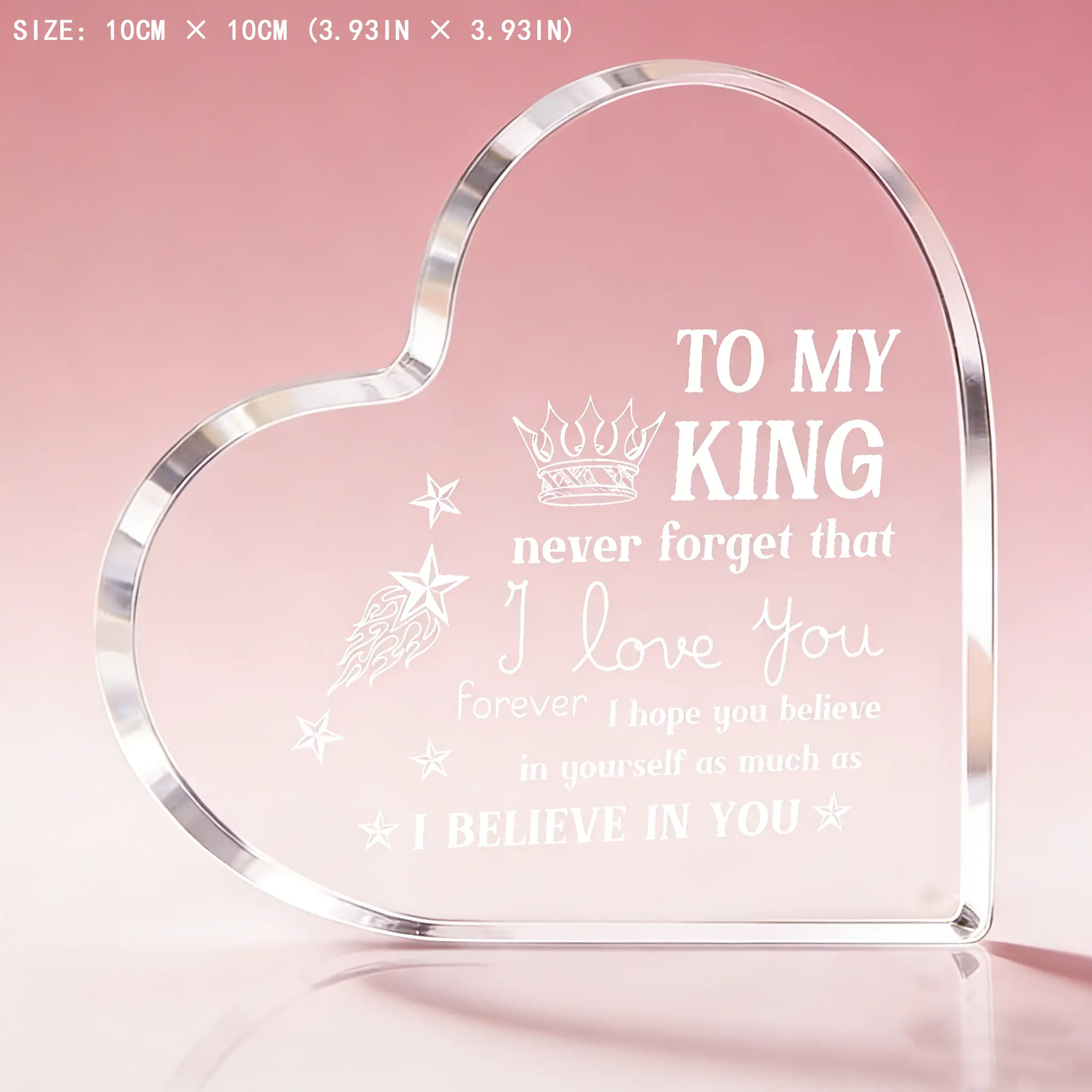 ·Design: Heart-shaped with crown, star pattern and "To My King" love message engraving