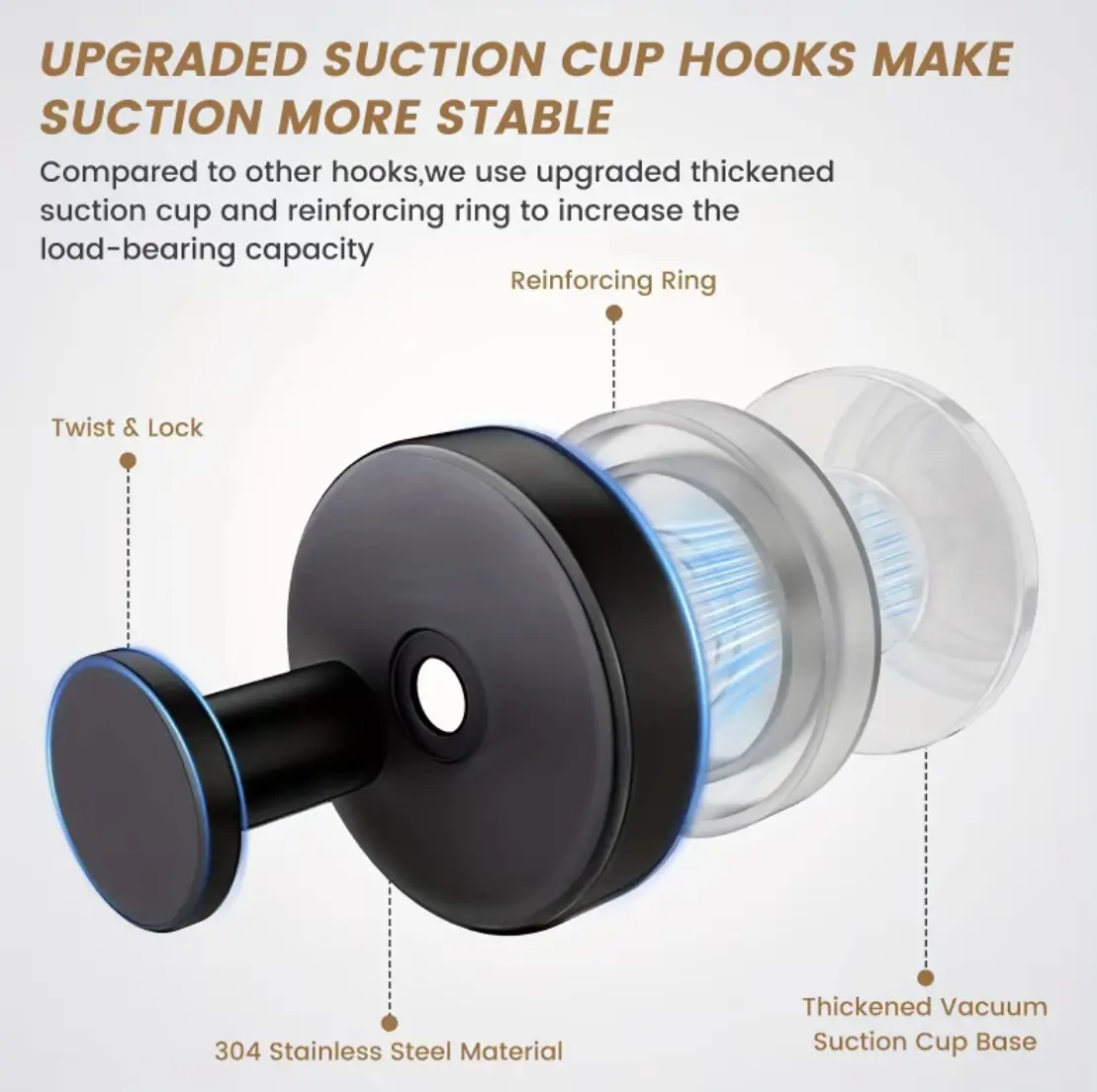 Enjoy easy installation with our bathroom suction hooks. These shower hooks suction cup are perfect for hanging