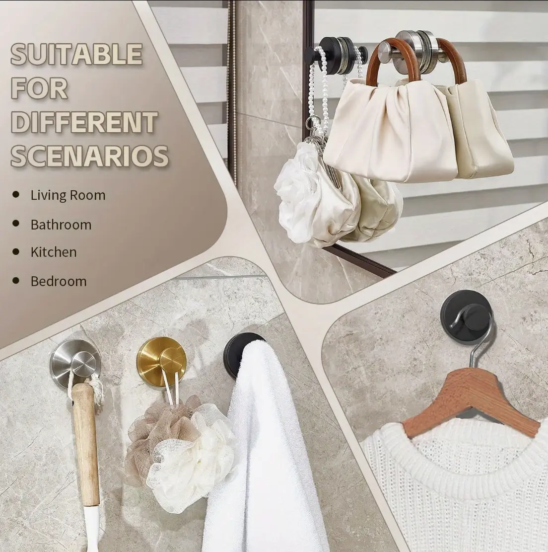 Versatile Suction Hooks for Shower Wall