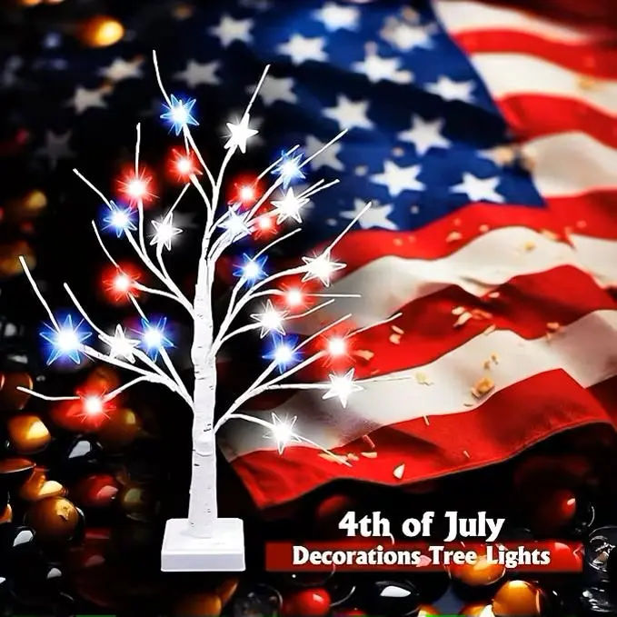 This red white blue lighted tree lamp is specially designed for 4th of July and Independence Day decorations. The classic patriotic color matching adds a strong festive atmosphere to your home, table, party and indoor space.8 Lighting Modes &