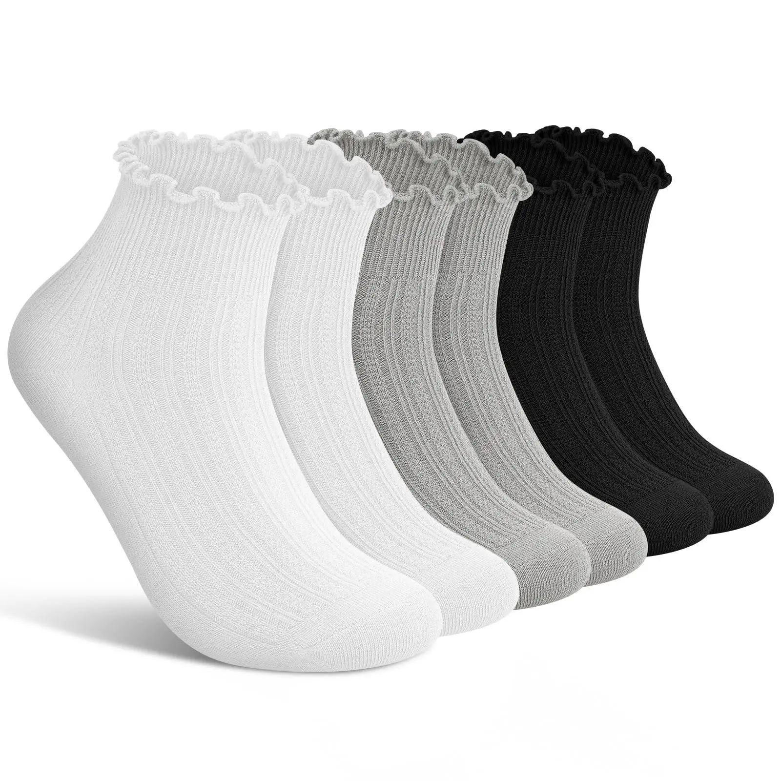 Ruffle Womens 6 Pairs Cute Ankle Lettuce Edge Frilly Crew for Bridal & Womenswear Comfortable & Stylish Colorblock Thermal Lined Women's Socks Over-the-Knee Compression Backless Bodysuit with Cup Kawaii Embroidered Floral Knee-High heatless curl