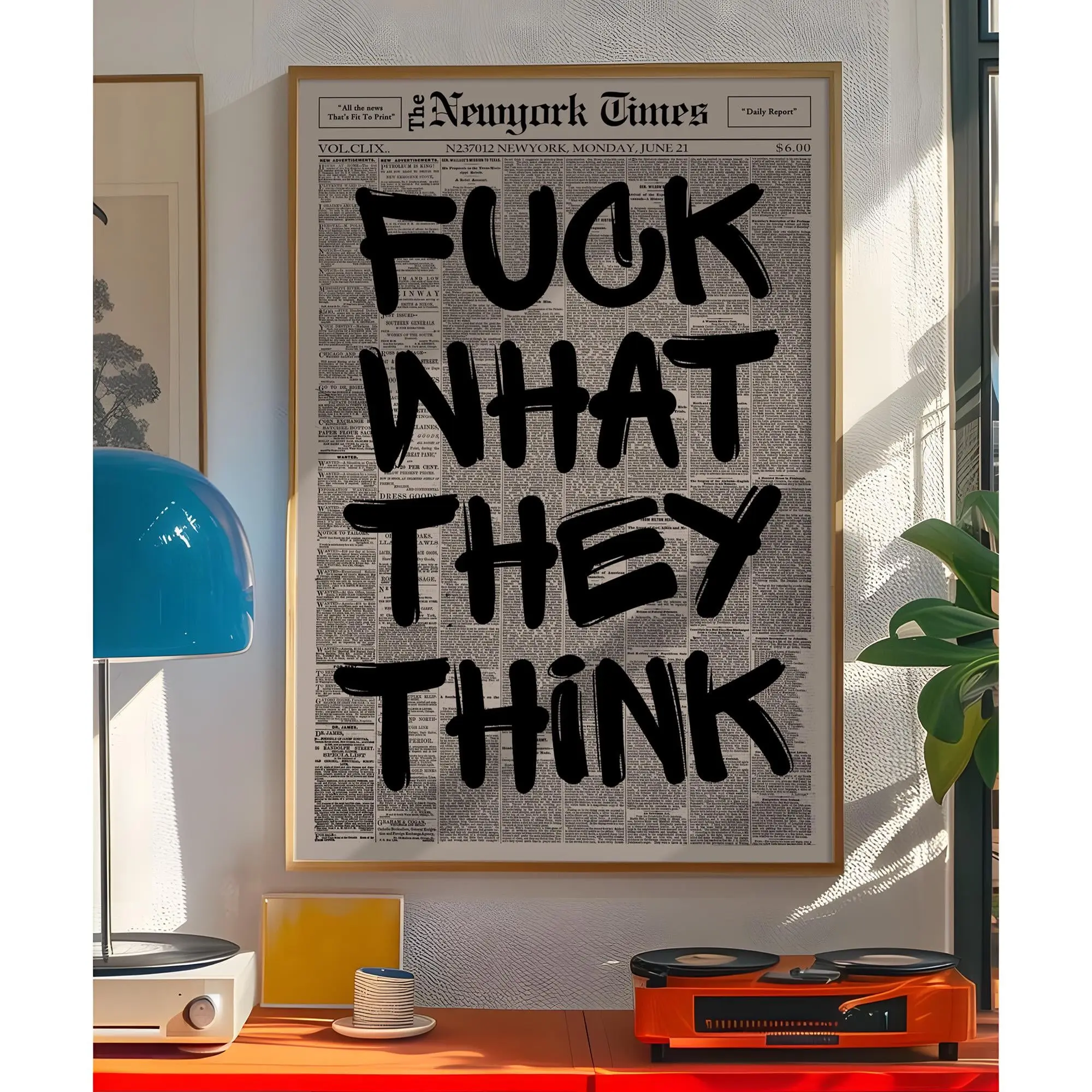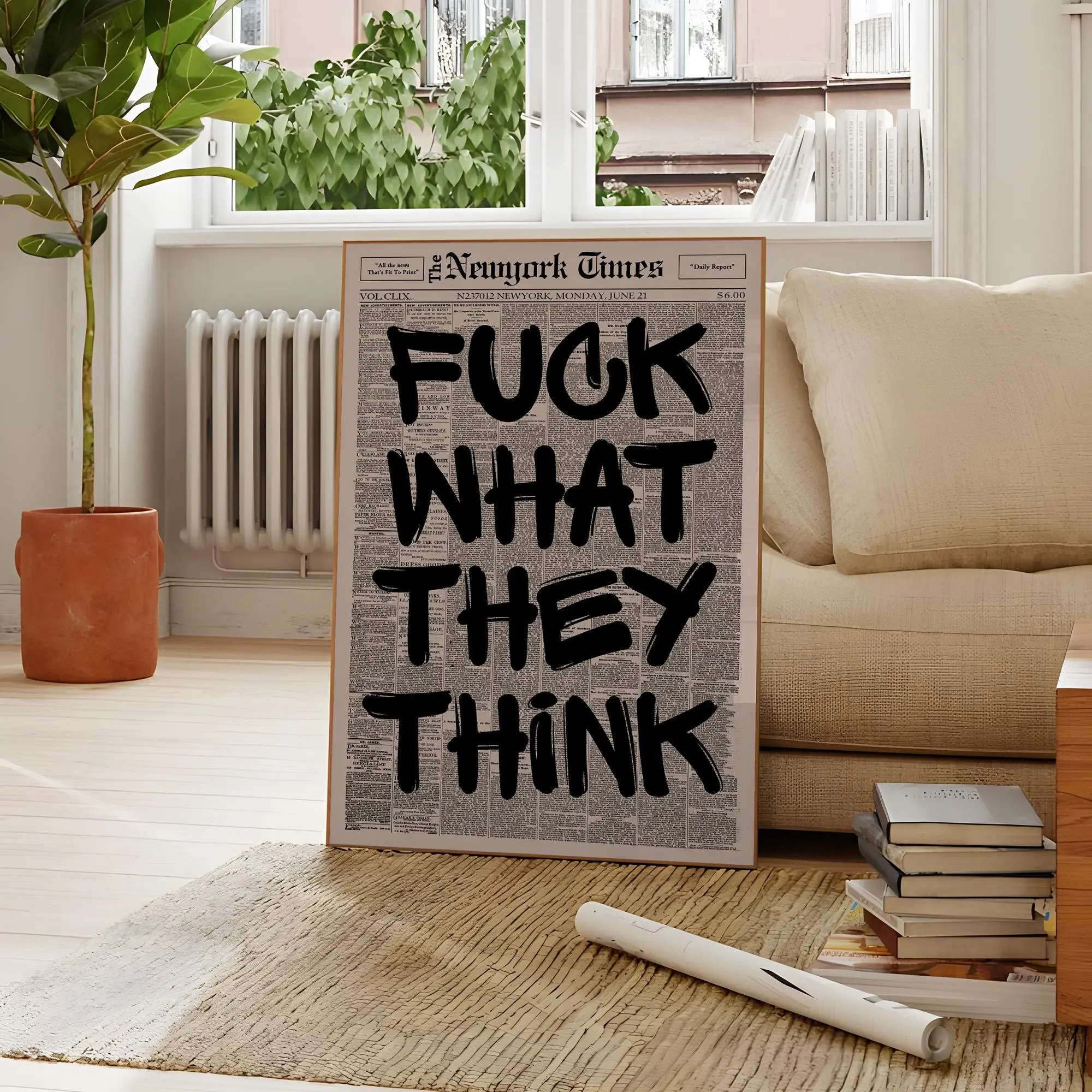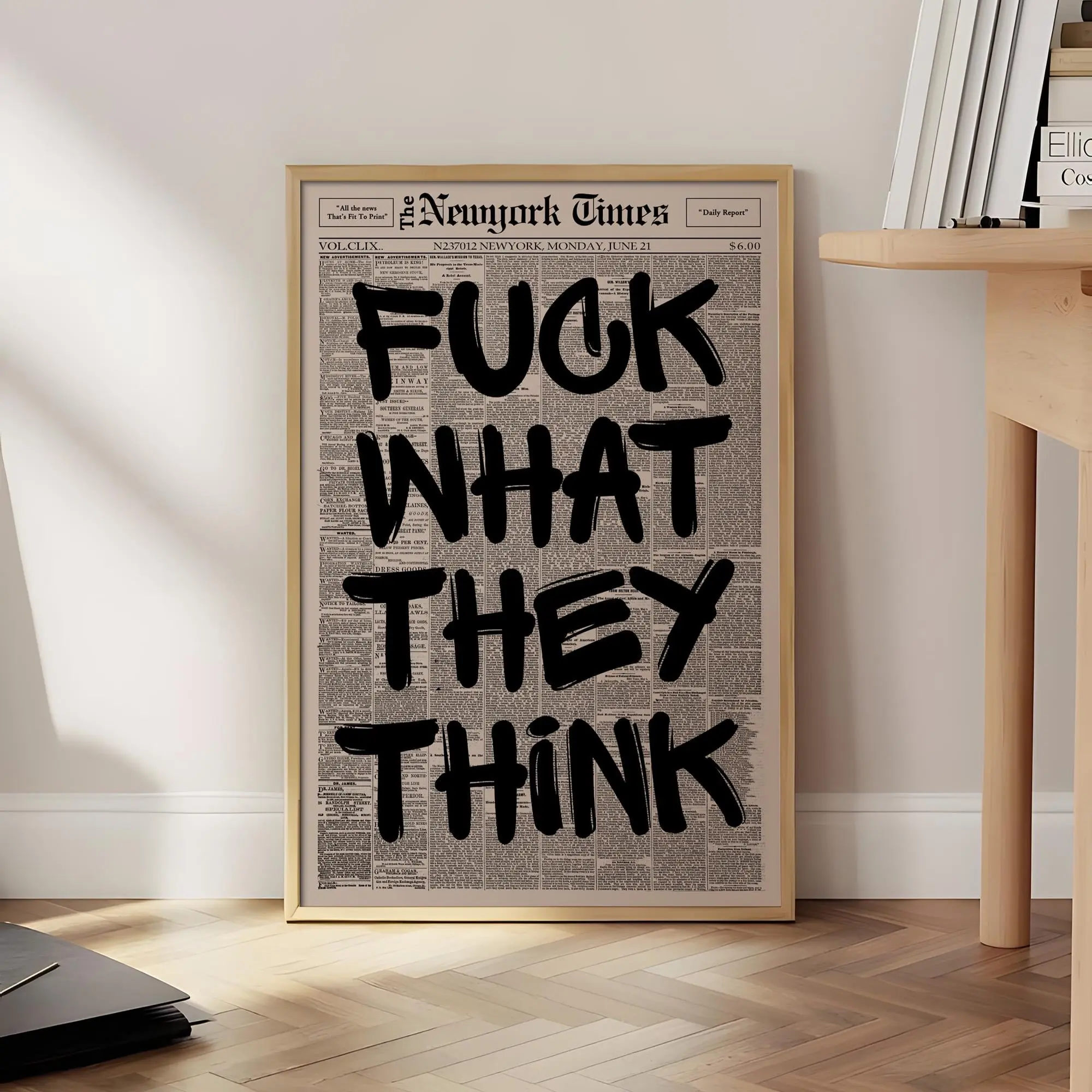 Retro Fuck What They Think Newspaper Poster, Motivation Poster, Aesthetic Typography Wall Art, Wall Decor, Powerful Quote Art Print
