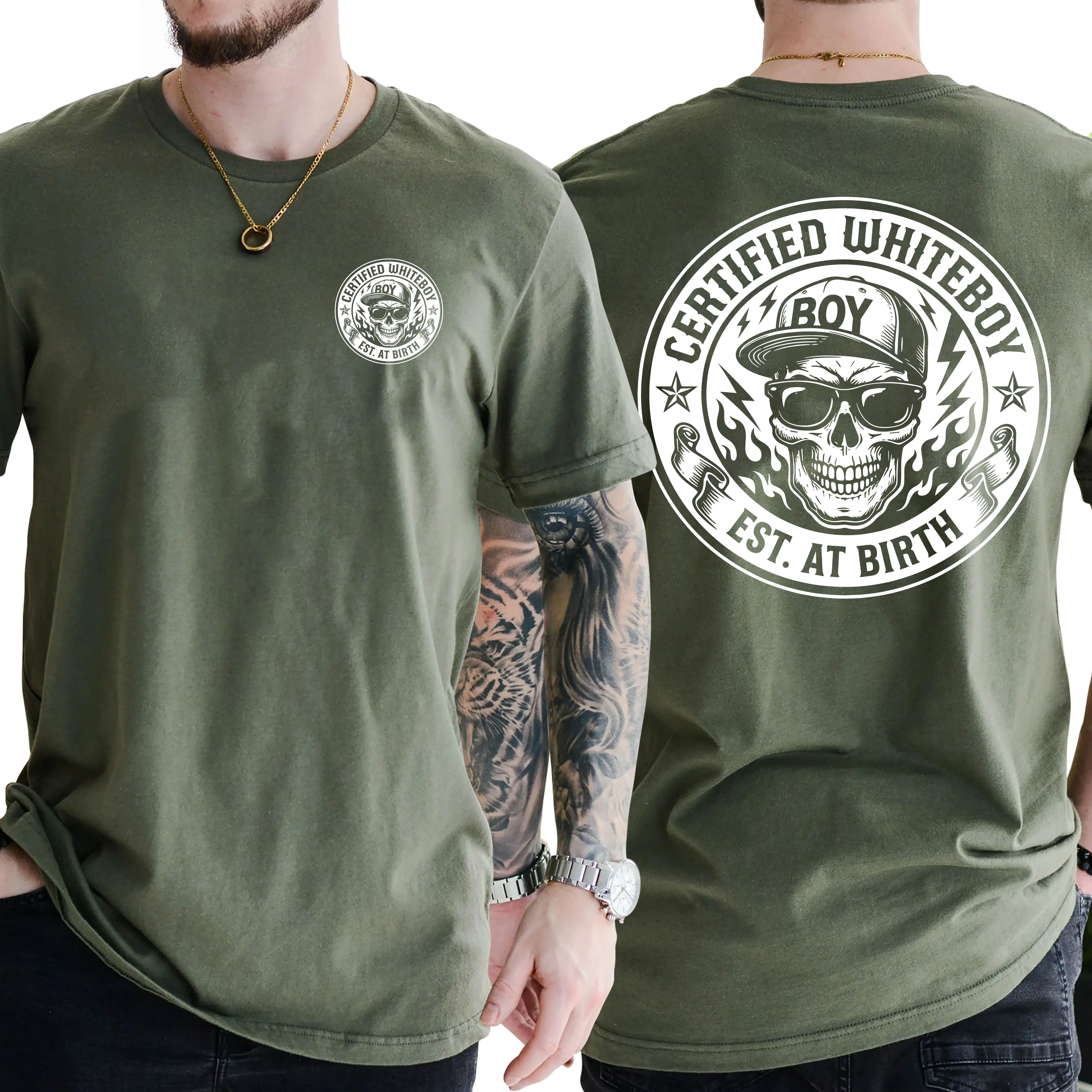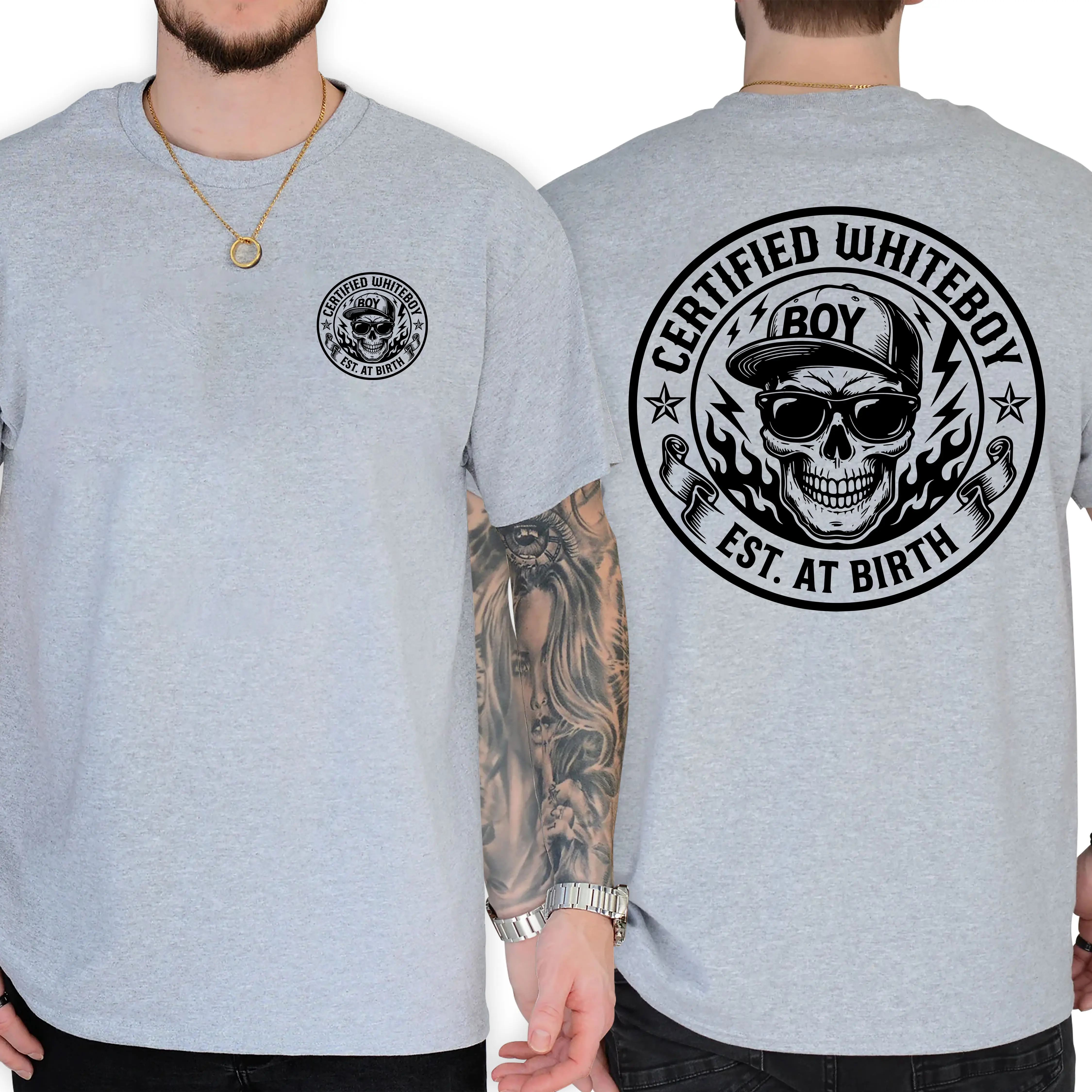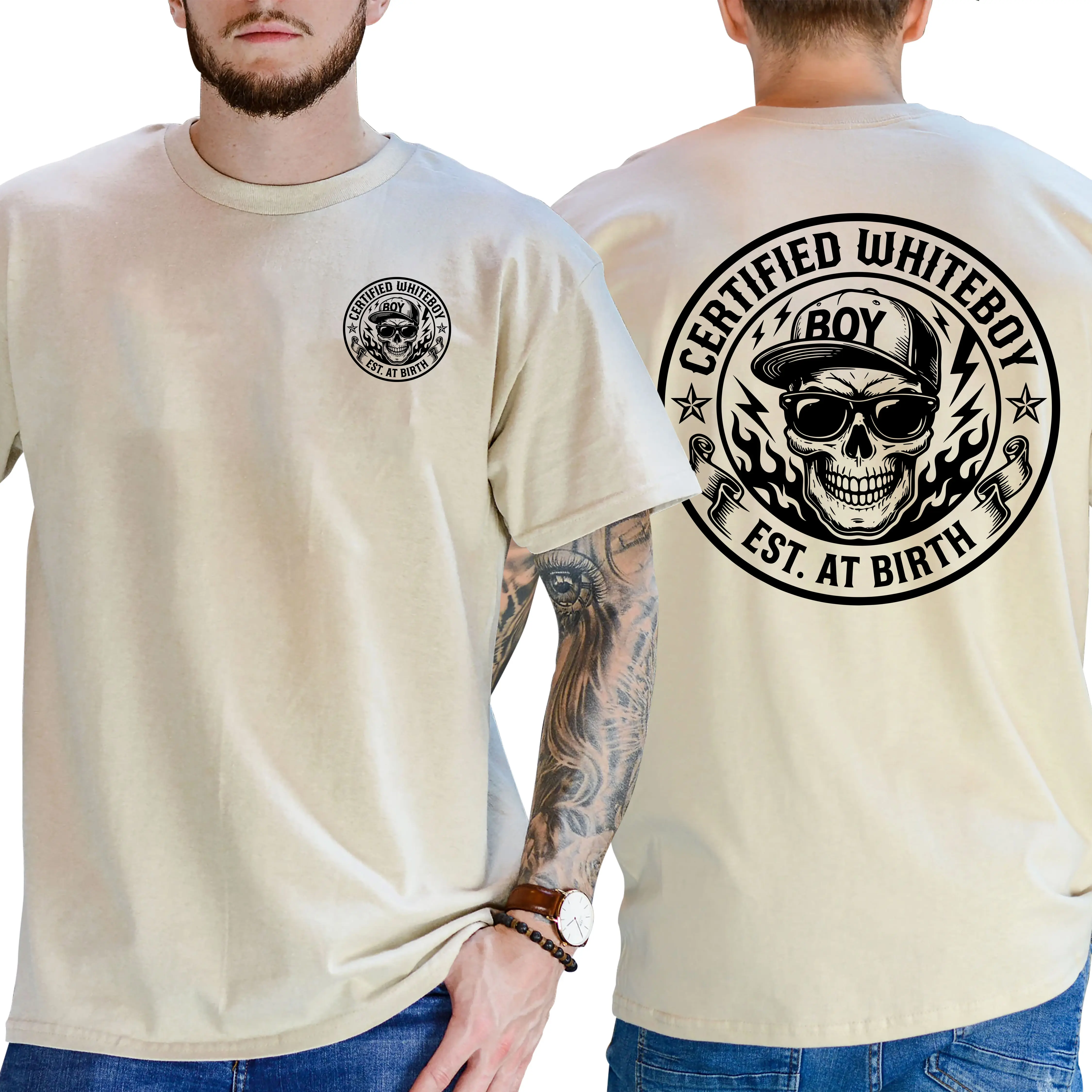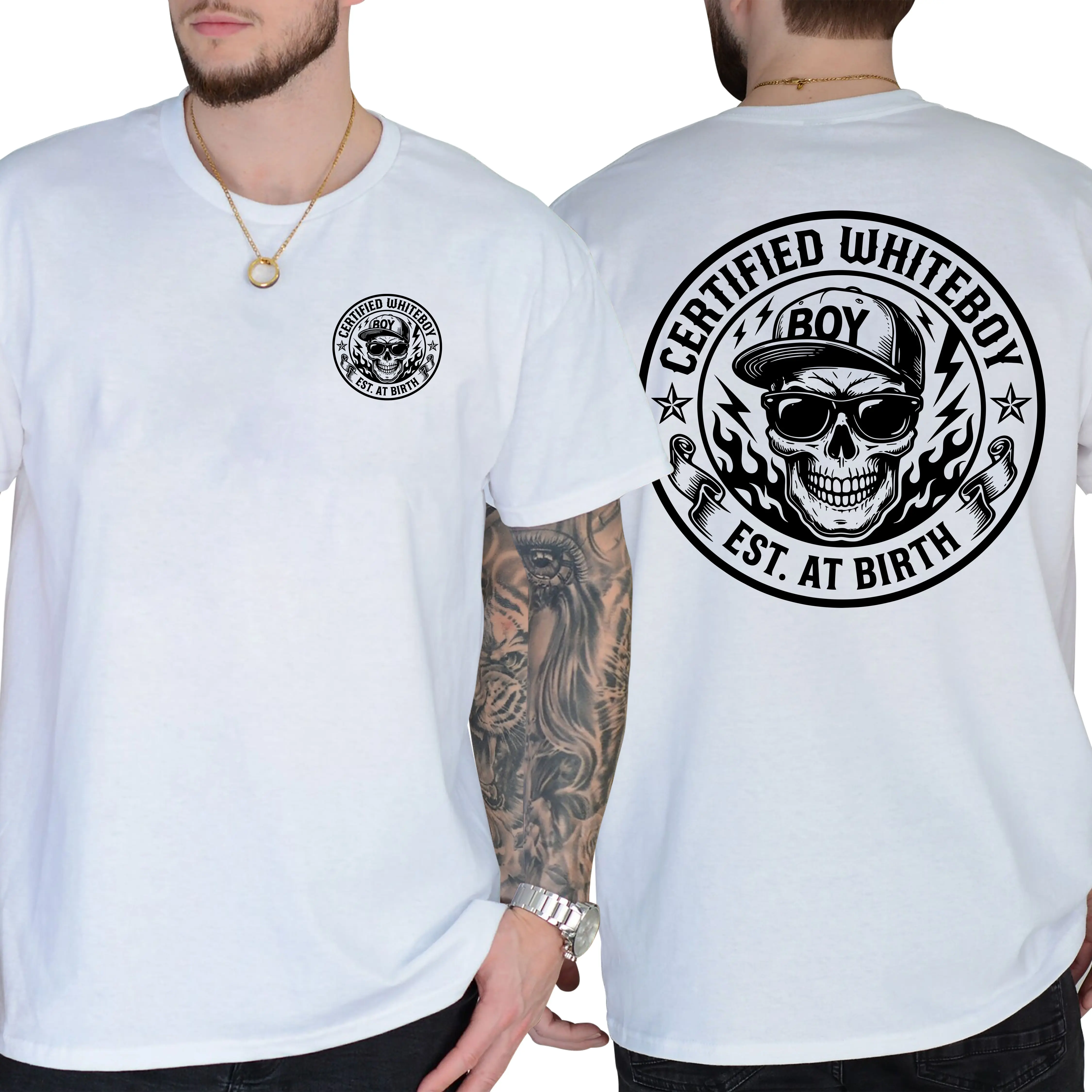 Certified Whiteboy Printed Men's T-shirt, Short Sleeve Printed Graphic Shirt, Daily Casual Cotton Menswear