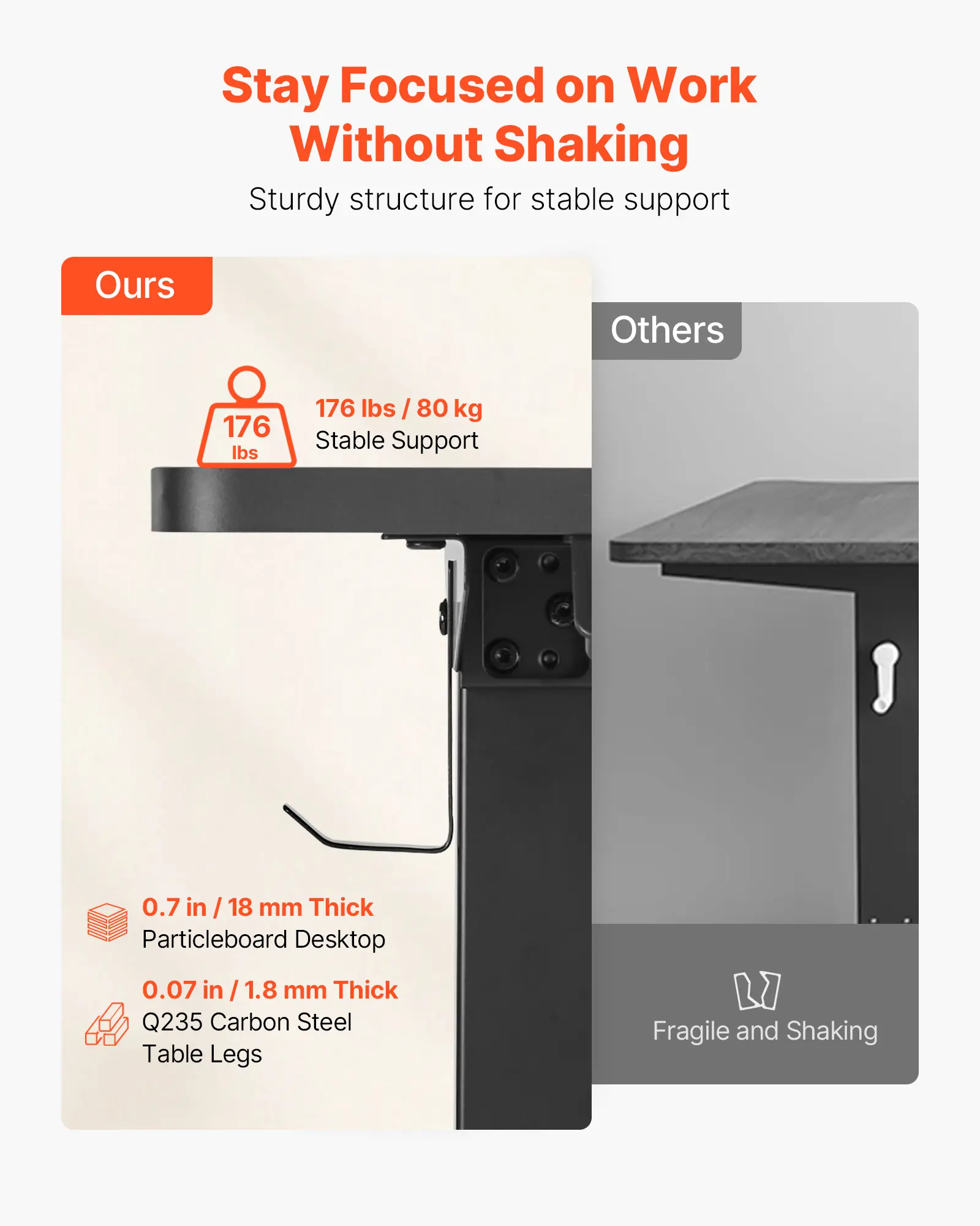 Sturdy Frame & Thick Desktop: This adjustable corner computer desk features a high-carbon steel frame and a thick particleboard desktop, ensuring durability and maximum stability. It provides a longer lifespan and stronger load-bearing capacity, supporting up to 176 lbs / 80 kg to securely hold multiple devices for office use