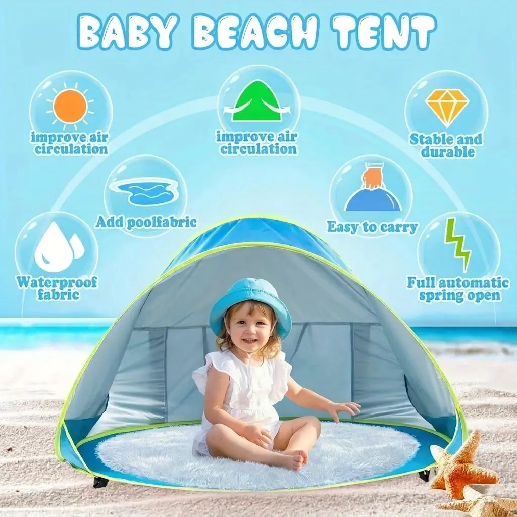 Baby Beach Tent & Pool Combo,y Beach Tent Pop Up Portable Shade Pool UV Protection Sun Shelter For Beach, Camping, Travel & Backyard