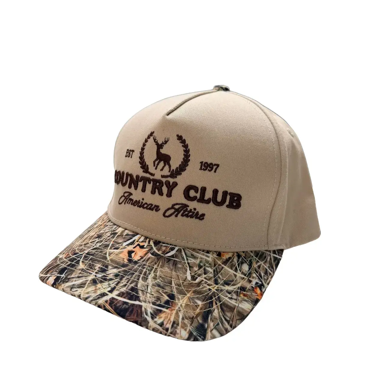 Classic country-style trucker cap with deer embroidery and camo brim. Full fabric design (no mesh) for a structured, premium feel. Adjustable snapback – comfortable for daily wear, outdoor, hunting, or travel. A great gift for outdoor lovers, hunters, and anyone who enjoys country-style fashion.