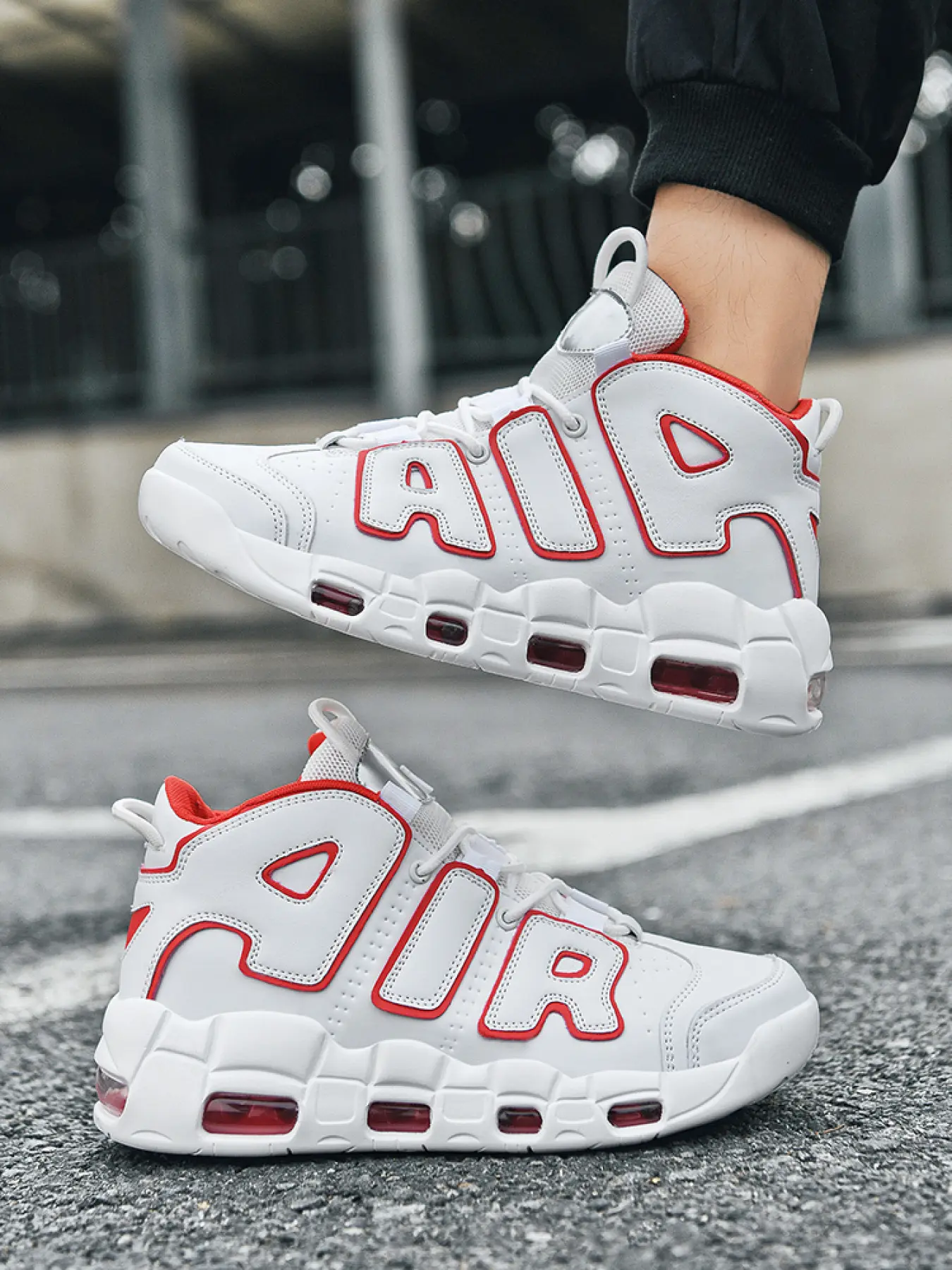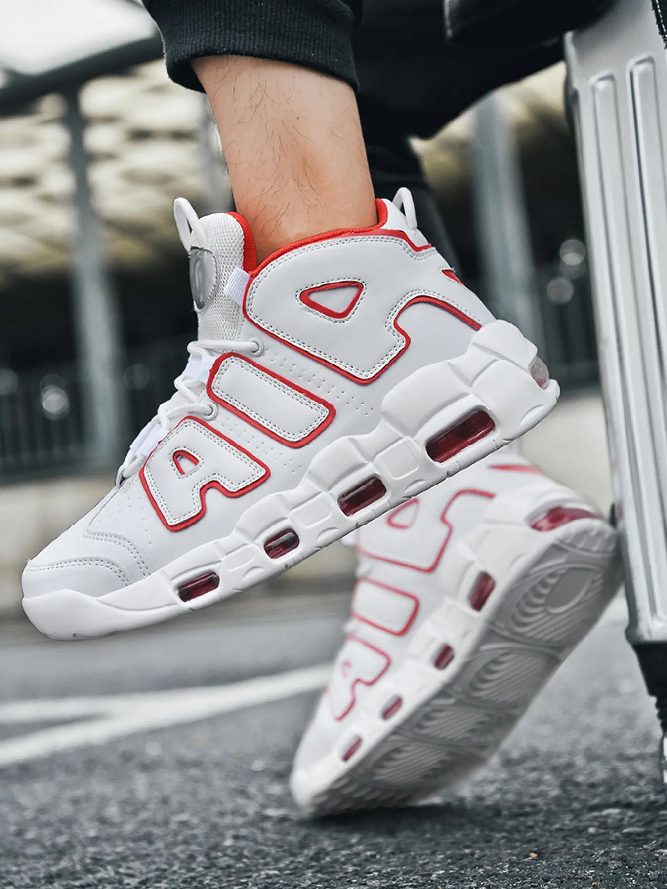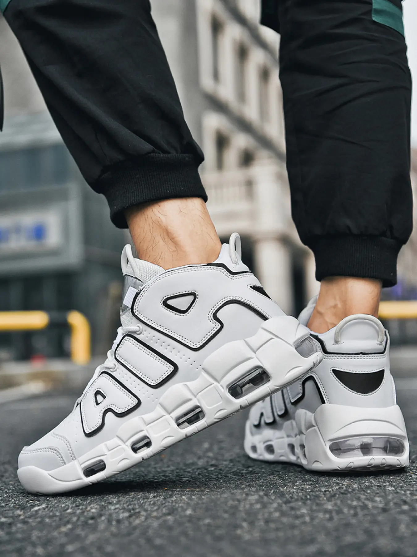 Men'S Casual High-Top Sneakers, Air Cushioned Design Basketball Shoes, Trendy Fit, PU Leather Upper, Rubber Sole, All Seasons, Medium Width, Above Ankle