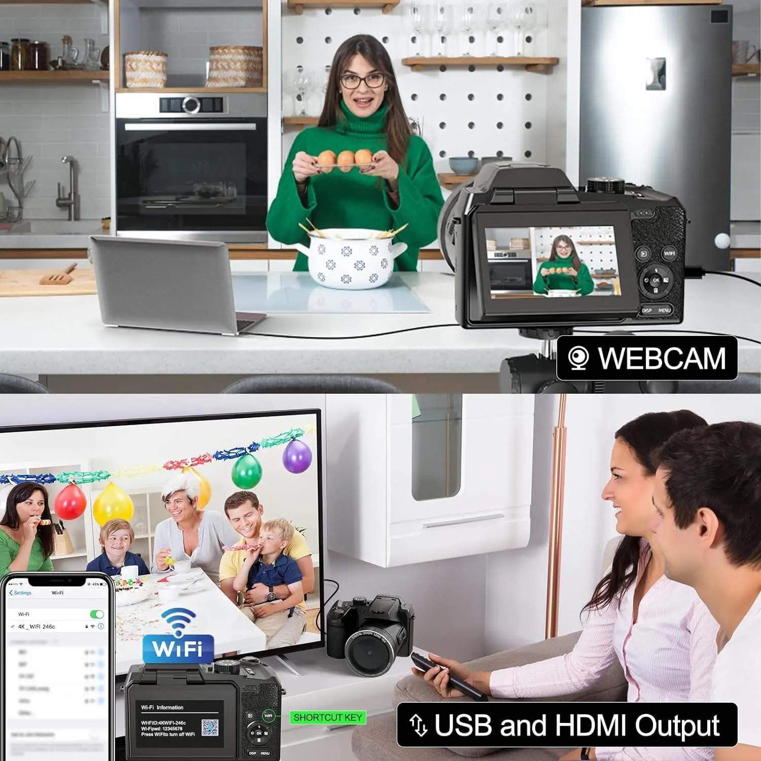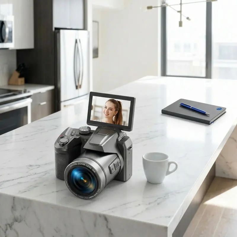 This advanced digital camera features a high-performance CMOS sensor, delivering stunning 48MP photos and recording crisp 4K at 60fps. Whether you're capturing landscapes or everyday moments, it offers an ideal balance of professional performance and user-friendly operation, suitable for both beginners and experienced photographers.