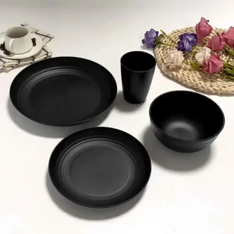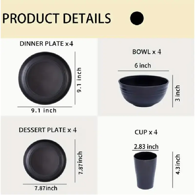 WHAT WILL YOU GET: 16-pcs wheat straw dinnerware setsinclude 9.81" dinner plates*8,7.81" dessert plates*8, 5.91"Bow*8,5.11" Cup*8.It's the combination for a familydinner party and will fulfill all your kitchen needs.