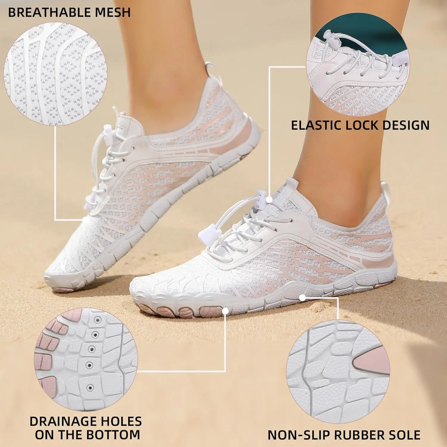 Ultimate Comfort Barefoot Shoes– All-Day Wear: Hiking Barefoot shoes for women men are crafted with breathable materials to keep your feet cool and reduce pressure, making them suitable for extended wear. The lightweight design minimizes irritation, ensuring a comfortable experience for work, outdoor activities, or casual daily useSupport – Encourages Movement: Barezoey barefoot shoes womens mens footwear are designed to support a walking style, enhancing foot flexibility and muscle strength. The ergonomic design reduces discomfort and encourages a more balanced and relaxed stride for everyday activitiesPromotes Foot Wellness: By allowing a closer connection to the ground, men's women's barefoot shoes support foot movement and help maintain blood flow. This feature is designed to offer a refreshing walking experience while contributing to overall foot comfortSpacious Toe Box – Freedom for Your Toes: The wide toe box in women's men's barefoot shoes allows your toes to spread naturally, reducing cramping and discomfort.This design helps maintain proper alignment and adds flexibility for walking, hiking, or casual wearLightweight & Versatile – for Any Occasion: Barezoey Barefoot shoes women mens water shoes combine a sleek design with durable functionality, making them ideal for various activities, from casual strolls to outdoor adventures. Their versatility ensures unmatched comfort wherever life takes you