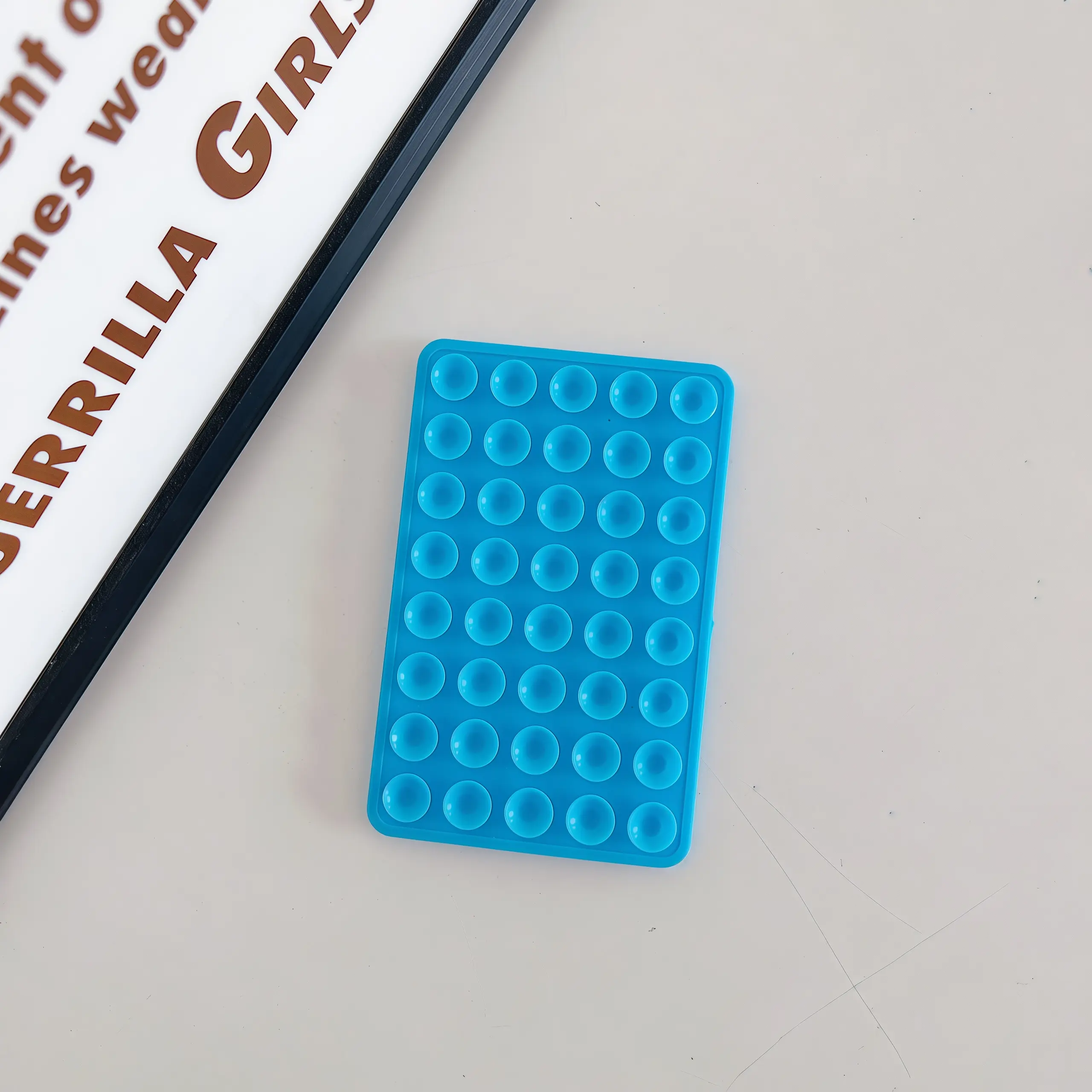Product Image: The attached image shows the Yojaro Silicone Phone Grip in blue, featuring 40 suction cups on both sides.