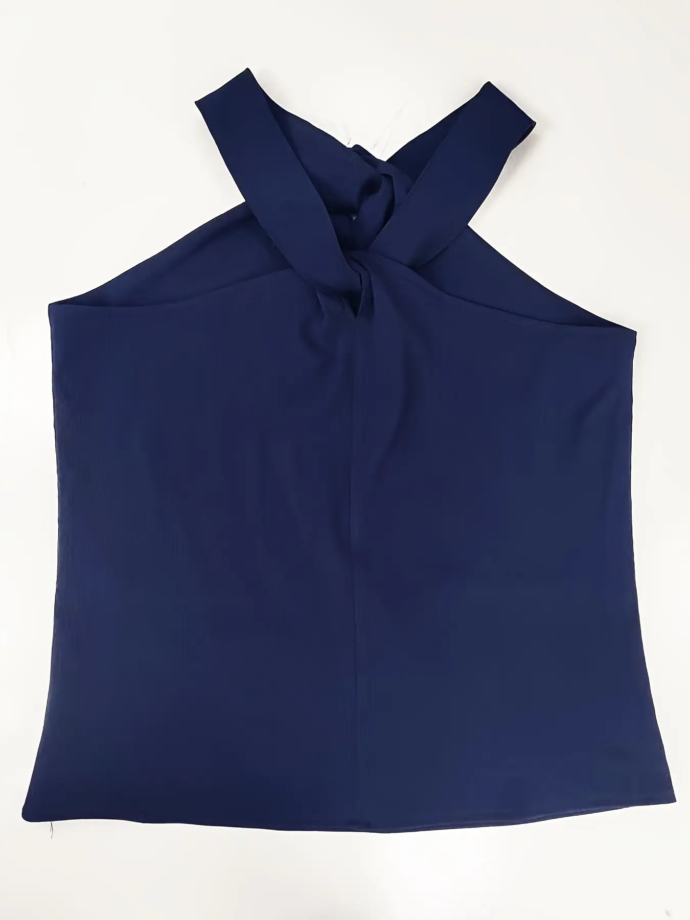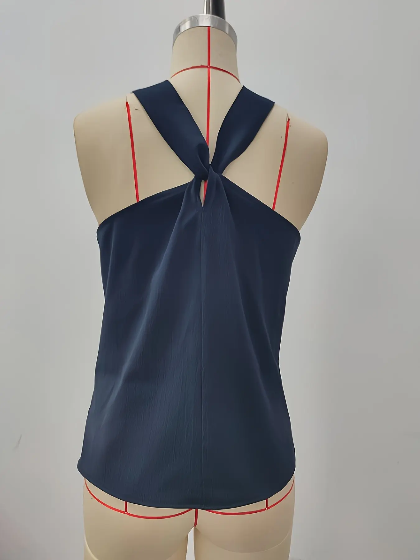 Women's Halter Twist Knot Sleeveless Tank Top 2025, Front Keyhole Cutout Casual Cami Top, Elegant Office Workwear, Trendy Business Casual, Summer Streetwear, Chic Daily Wear, Versatile for Brunch, Date Night, Vacation, Beach, Party, Women's Solid Black Al
