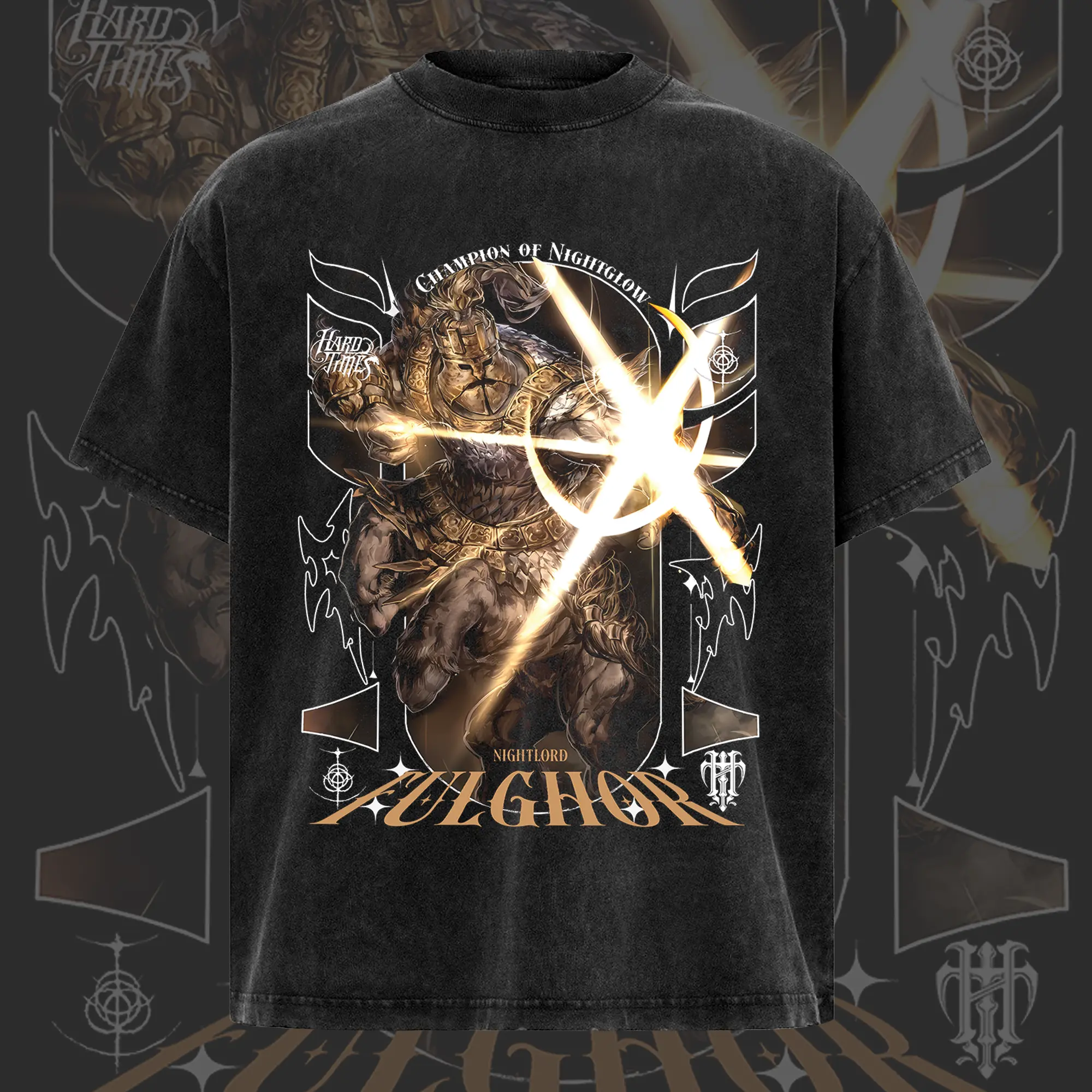 "Fulghor" - Elden Ring Game Edition Double Printed Oversize Lightweight Acid Washed Tee - Hoodie, Elden Ring Fans, RPG Game Graphic Hoodie, Streetwear Unisex Oversize Gift for RPG Game, Summers Outfits, Gift for Elden Ring Fans